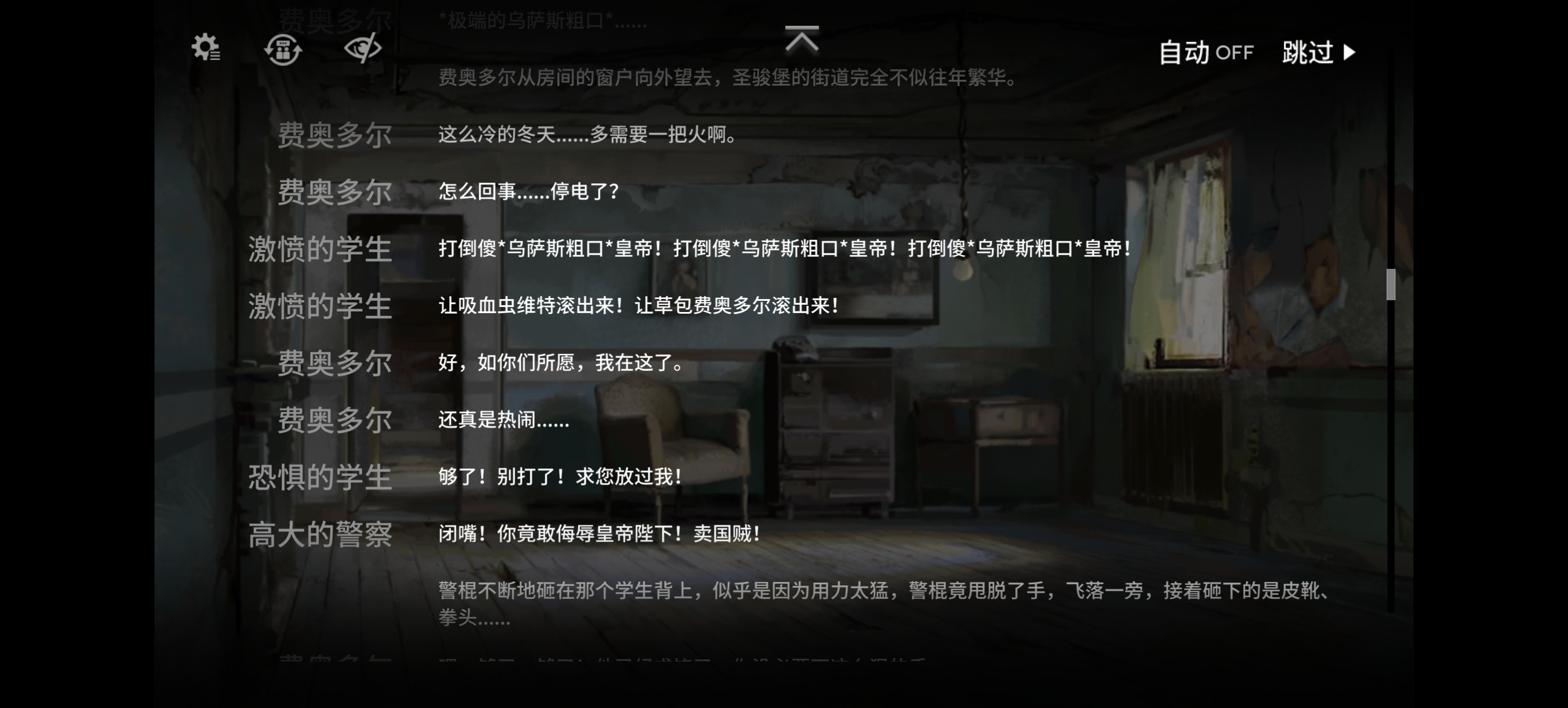 当天也是风云涌动,乌萨斯的老板不是很乐意参加这个舞会,被小弟催着去应酬,还没想好到底去不去,小弟发现舞会并不是最大的问题,还有人密谋做自爆兵给舞会炸了,于是连夜喊内卫去救老板。二老板对内卫很恼火,自个走了,与此同时舞会区的警卫开始镇压学生,大批学生被捕,剩余的逃跑的躲进了旧剧院。