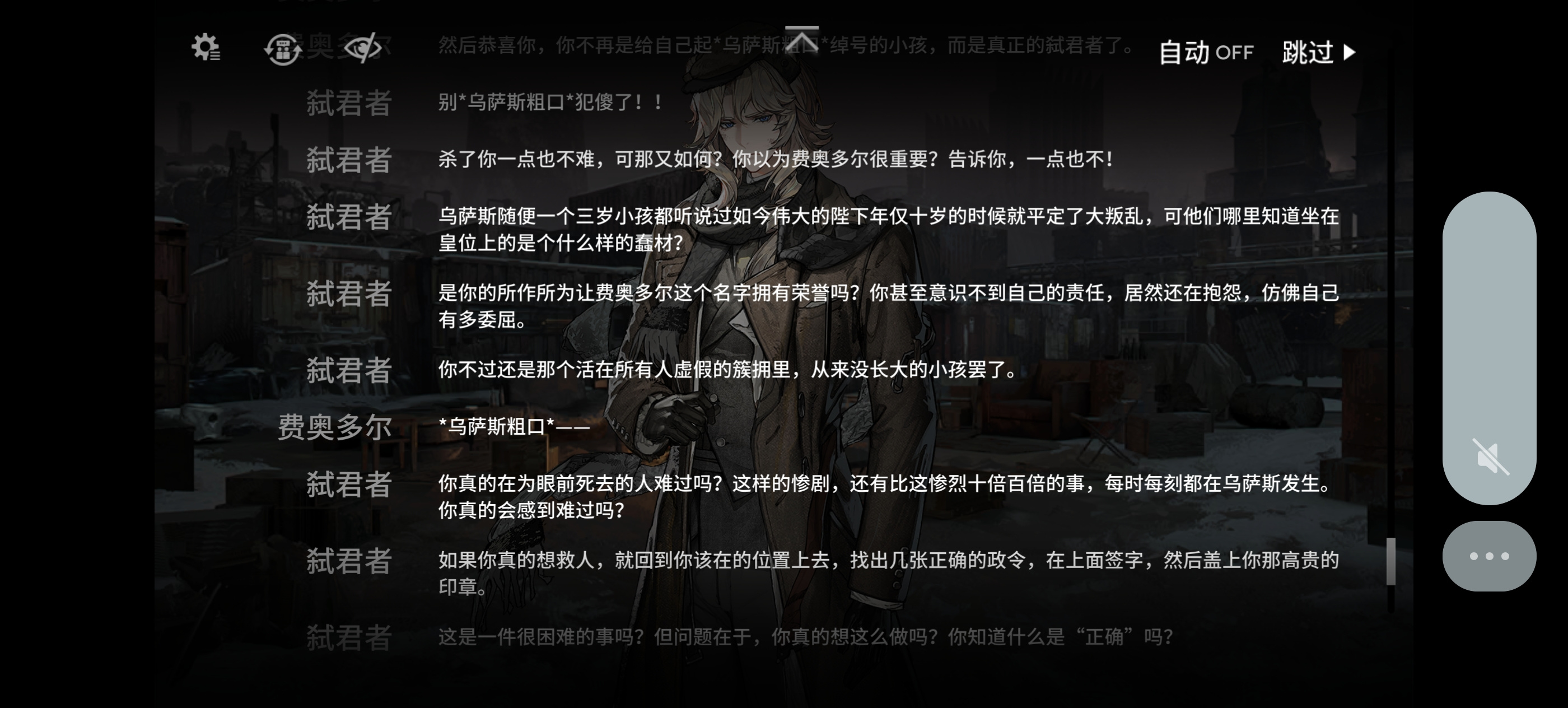 这位是费奥多尔,被迫接手老爹的乌萨斯帝国,做了多年的窝囊皇帝,面对新旧贵族盘根错节的纠缠。他就像一个除草工人,只不过他只有两个小弟,要除掉亚马逊雨林,大概就是这种感觉。除了做盖章大师,他活了那么多年并没有什么用,以下简称老板