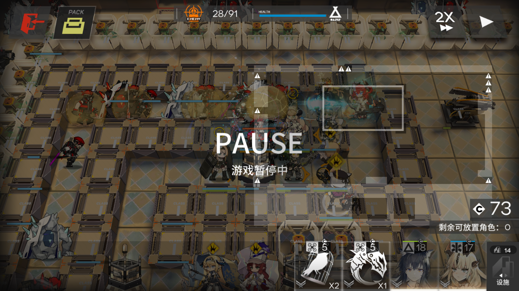 如图是我的基建,中间全部是一级高台,最外面围了一圈隐匿箱子拉开投石车距离,让它打不到。其实也没必要这么复杂,打到现在还没怪能走过我部署的那个弯,只要有条直道就行。