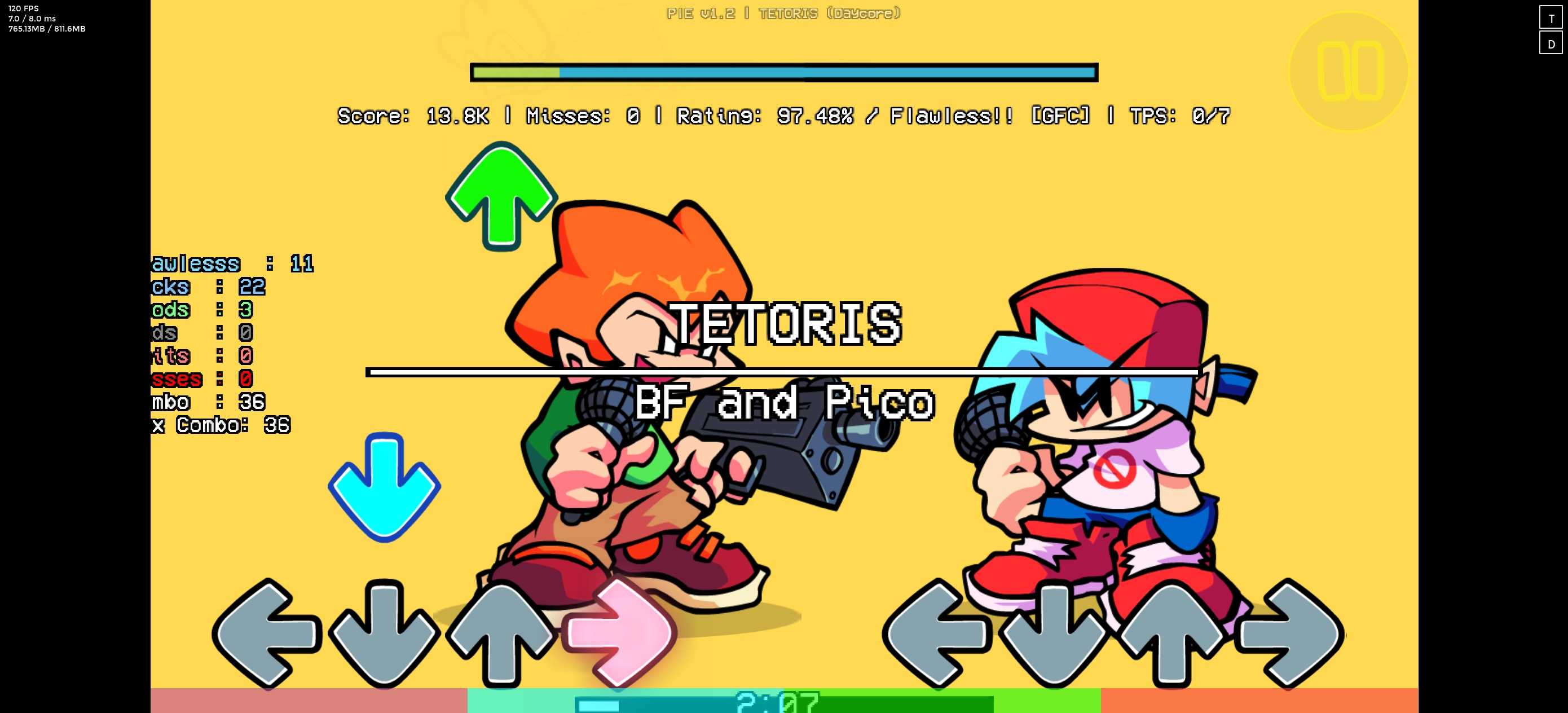 Plus引擎1.2 PE0.7.3也能玩 拆包后把.PlusEngine解压到根目录就能玩 一首tetoris曲但BF和pico唱 非常优质好听