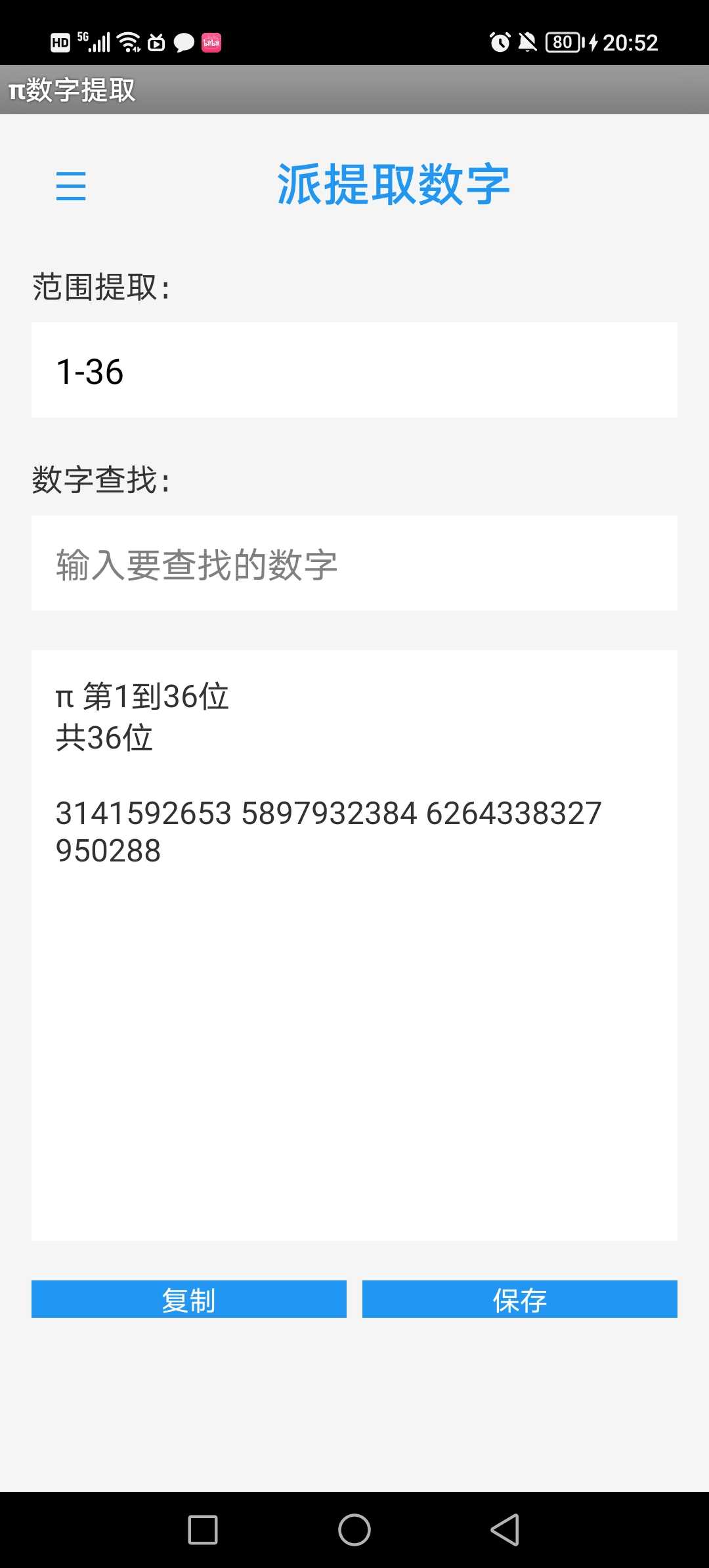 ai写的代码,自制应用,提取π前一千万位,可指定范围,特定数字查找