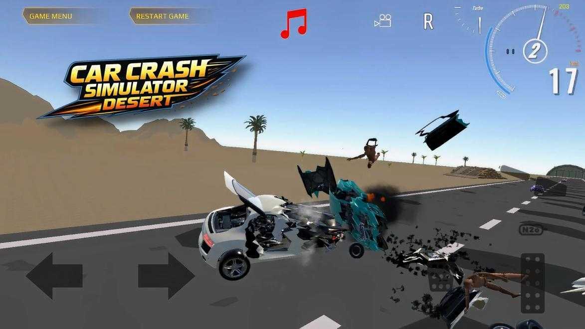 《沙漠碰撞模拟器》是一款以沙漠环境为背景的碰撞驾驶体验游戏。 车辆碰撞时会受到精细的物理效果损伤。配备安全气囊的车辆在碰撞时会弹出气囊。碰撞测试假人驾驶员在受到猛烈撞击时会根据物理原理被甩出车外。 游戏提供 98 种不同的车辆供玩家选择。摩托车、嘟嘟车、经典老爷车、肌肉车、日系车、卡车、巴士等等,全部解锁。