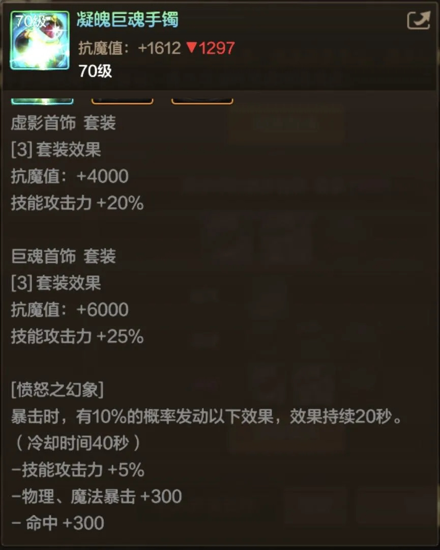 巨魂套属性比较全面,黄字、白字、暴伤应有尽有,并且数值都很高,除了速度稍微差点,其他方面也是没有缺陷了,很多玩家也认为这套是最强首饰套。