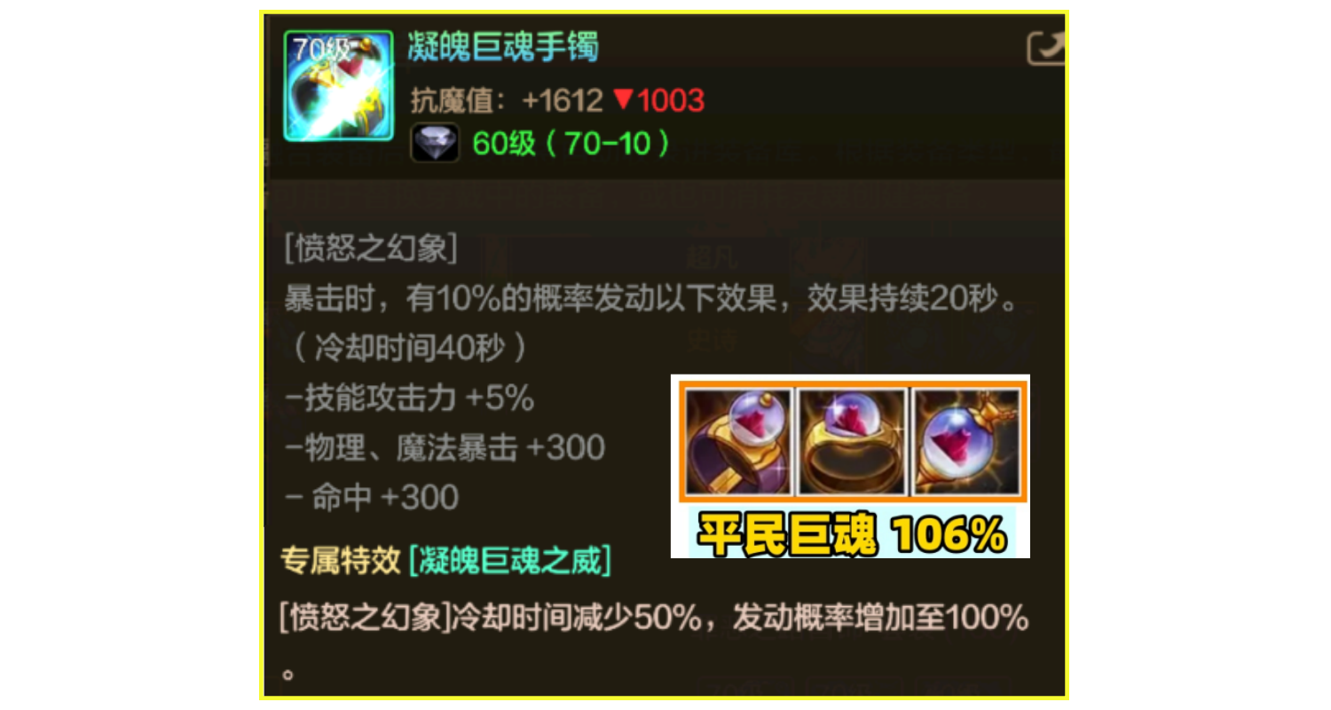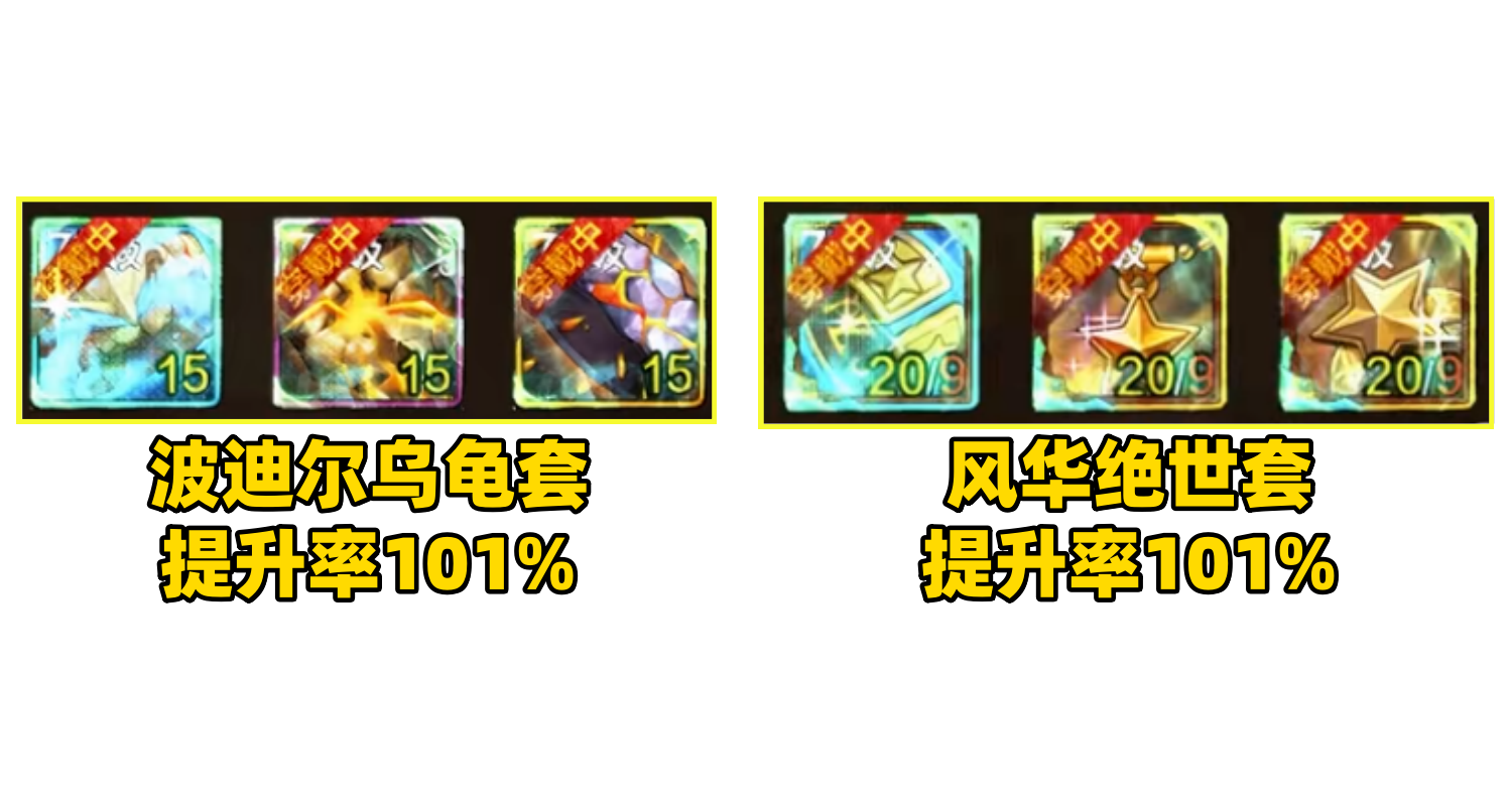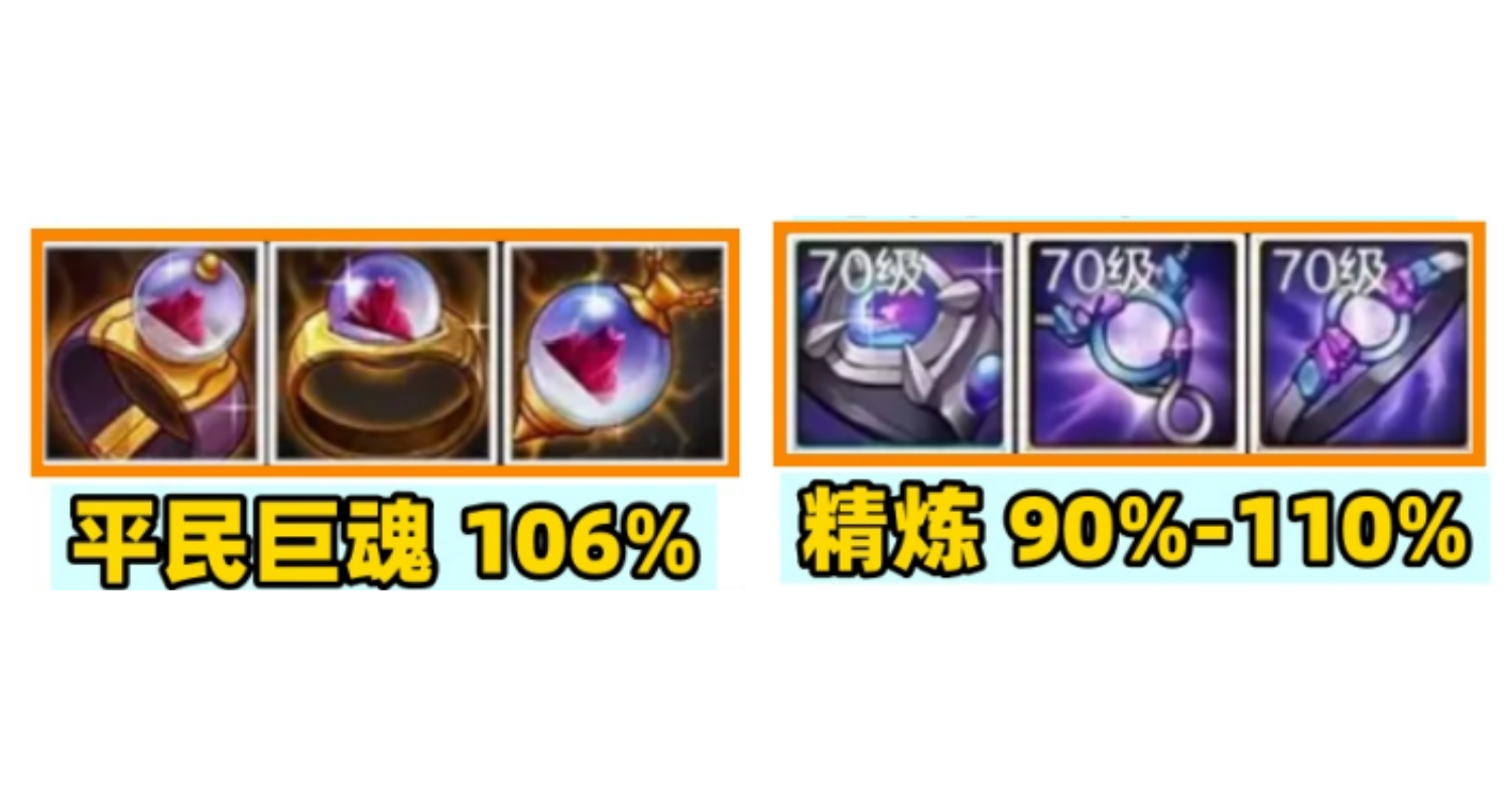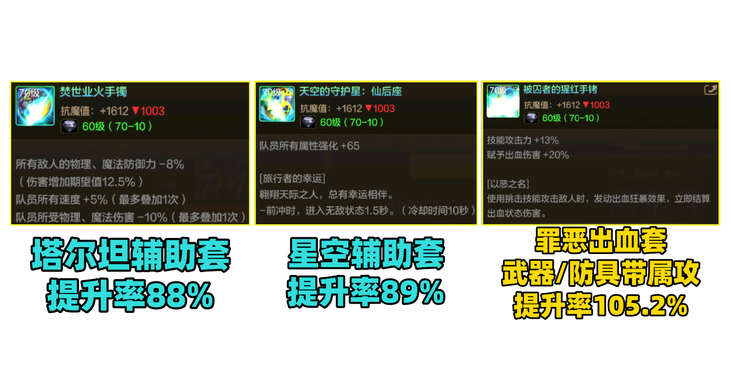 巨魂套伤害稳定首选,预期增伤106%。提供高额的暴击和命中,适合全职业选择。
