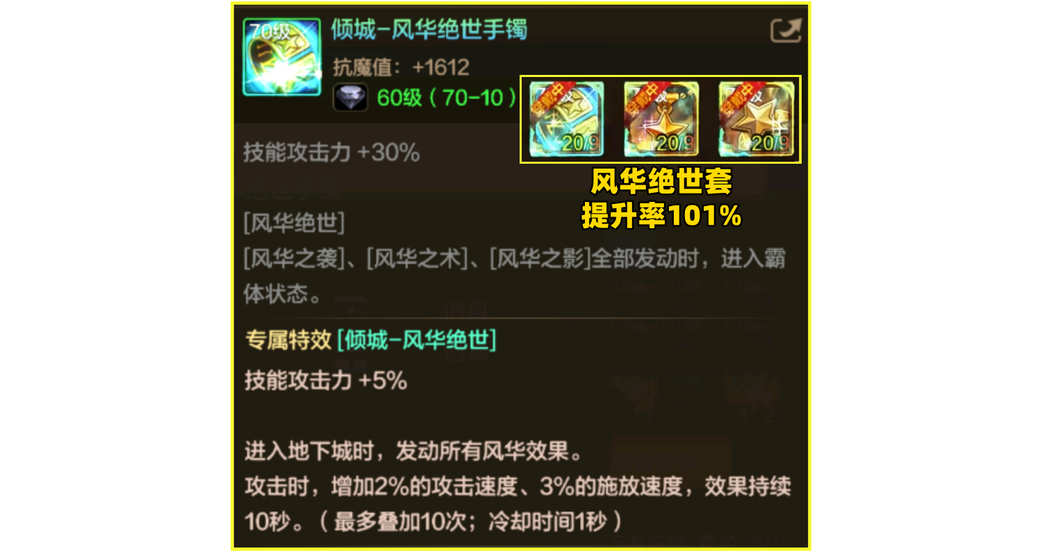 风华套数据不行但实战没输过,仅一件超凡手镯就能全程霸体。3件毕业提供高额三速,非常适合弹药漫游等职业。