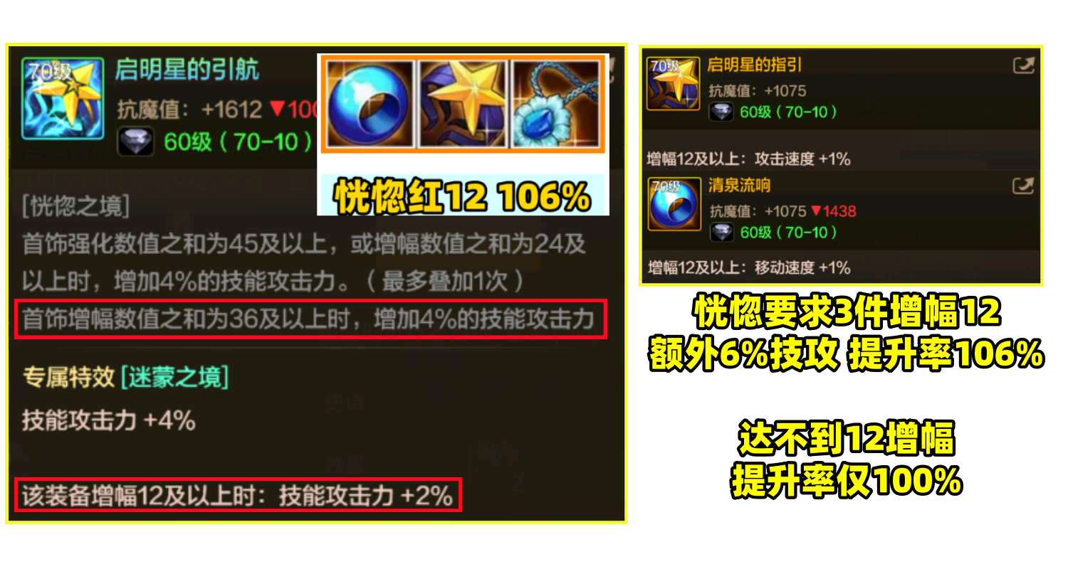 最后一名恍惚套首饰,上线前被称为最强首饰,上线后狗的嫌弃。要增幅12才能吃到最高技攻加成,伤害也仅追平巨魂套。不如精炼套上限来的高。