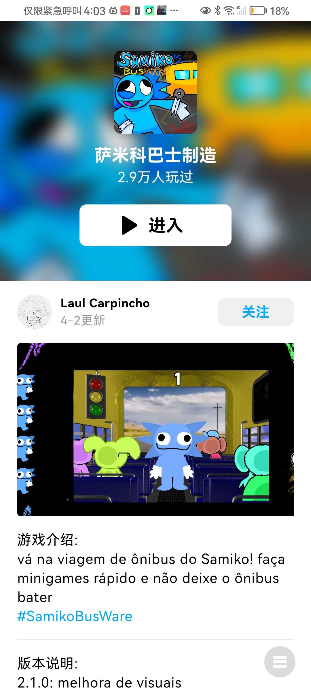 名字汉化,这个巴西游戏在创游世界里,请下载创游世界后再玩