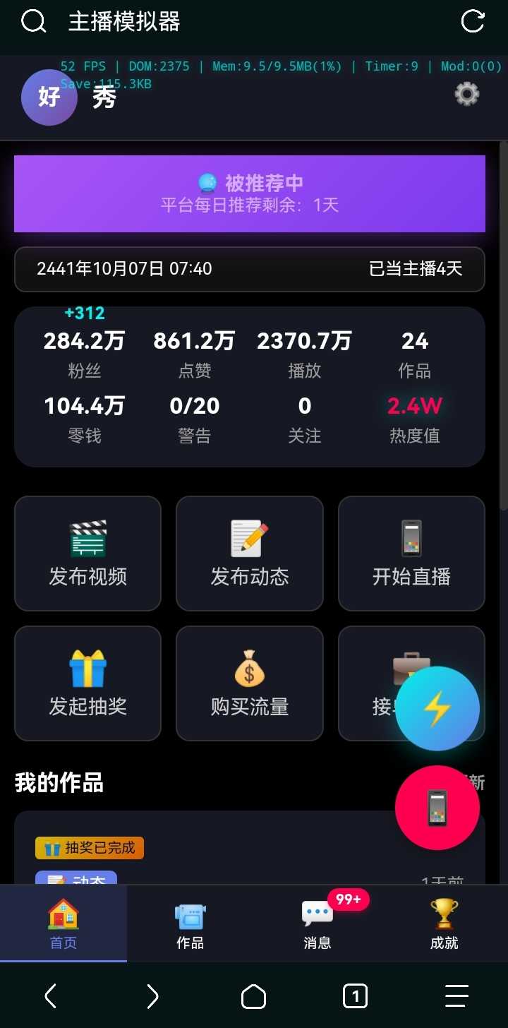✨更新内容: 1.修复了一个bug 2.移除两个随机事件 3.平台推荐,黑粉攻击随机事件重做 平台推荐:获得一天平台推荐,和热搜类似,系统消息会收到平台推荐信息 黑粉攻击:作品评论区出现大量黑粉言论 在线游玩:https://zbgame001.github.io/ 论坛:https://zbgame.hyper-li.xin/