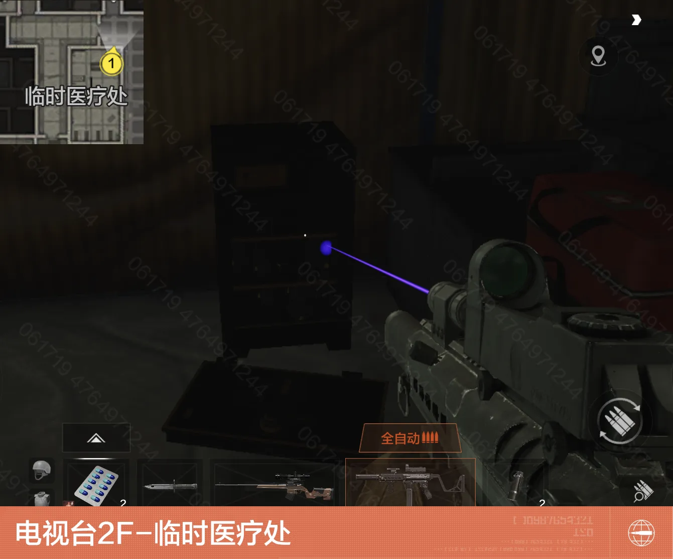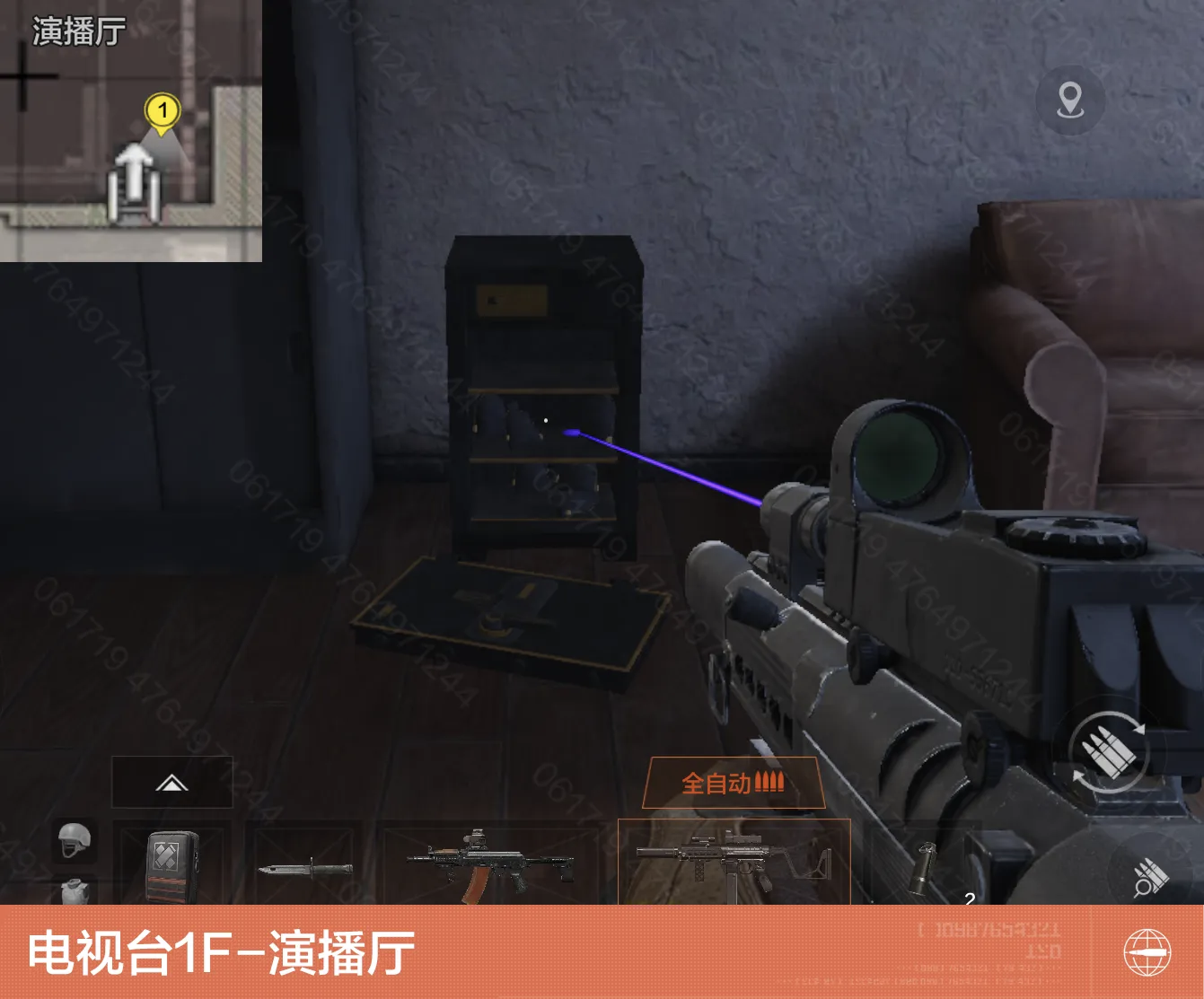 电视台内部共有8处随机保险刷新点。在1F区域内有5处,分别位于停车场、后勤区-餐厅、中控区域-演播厅、办公区-第一制作部、摄影区-录影棚;在2F区域内有3处,分别位于控电室、录音室、临时医疗处。
