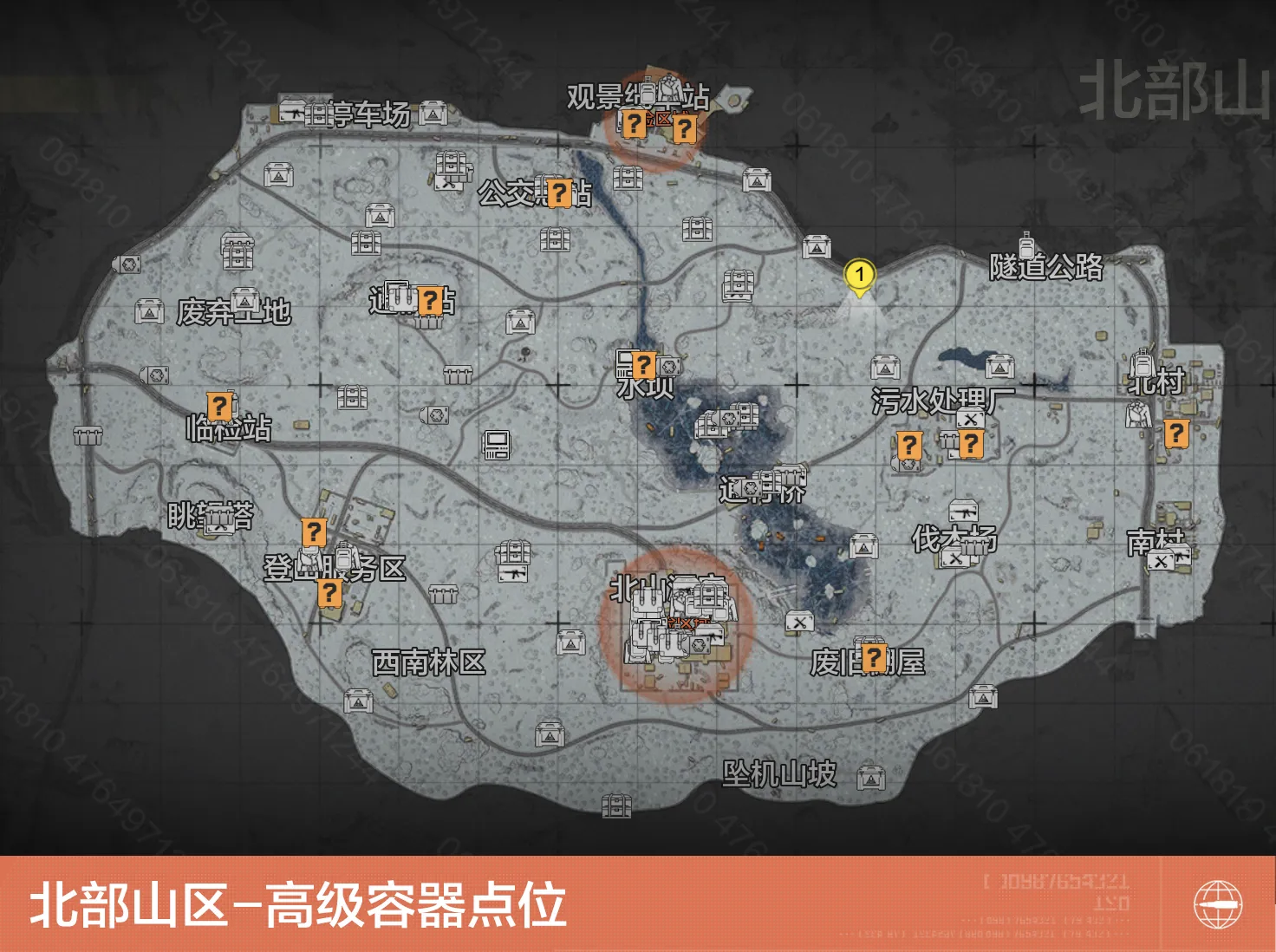 北部山区中共有12处随机保险刷新点,分别位于观景缆车站、公交总站、通信站、临检站、登山服务区、水坝、污水处理厂、北村、废旧棚屋内。