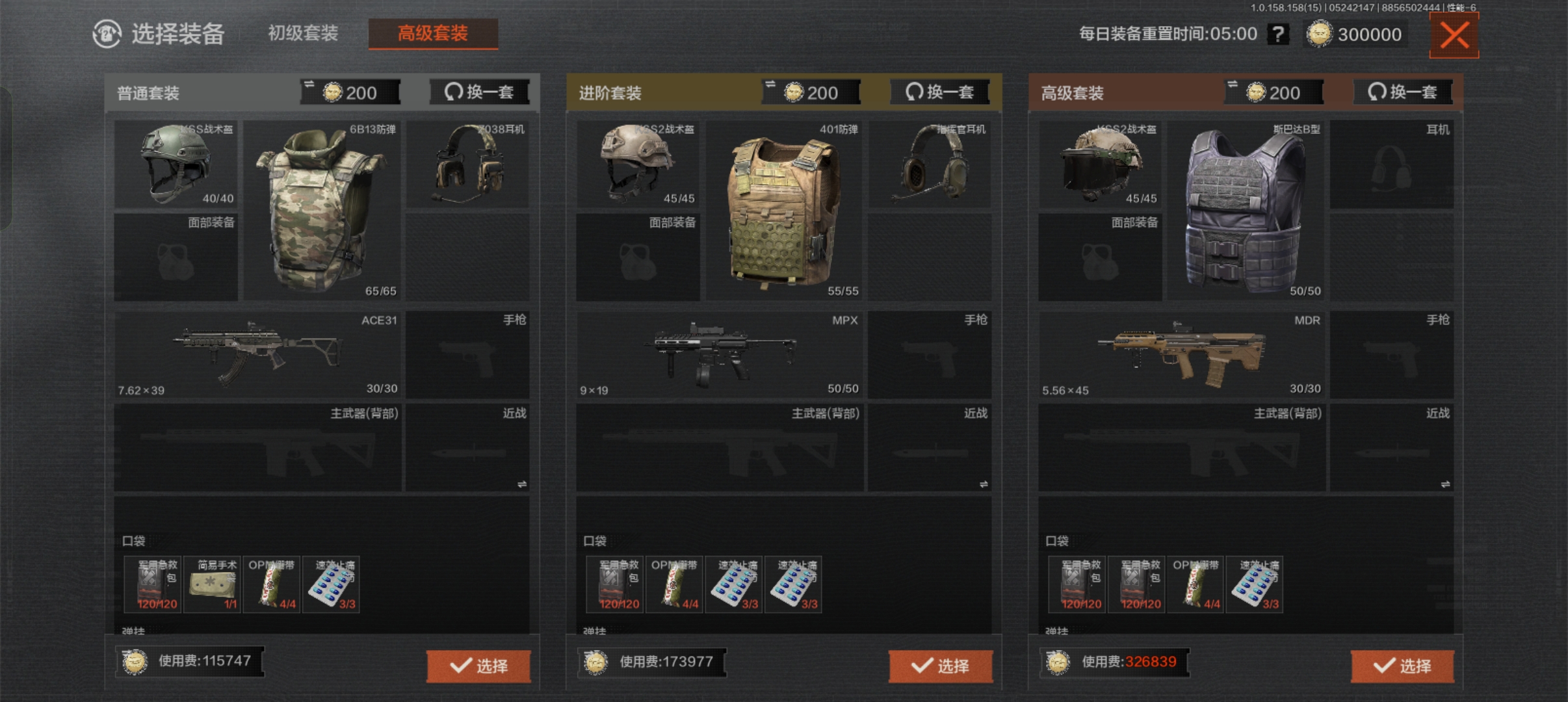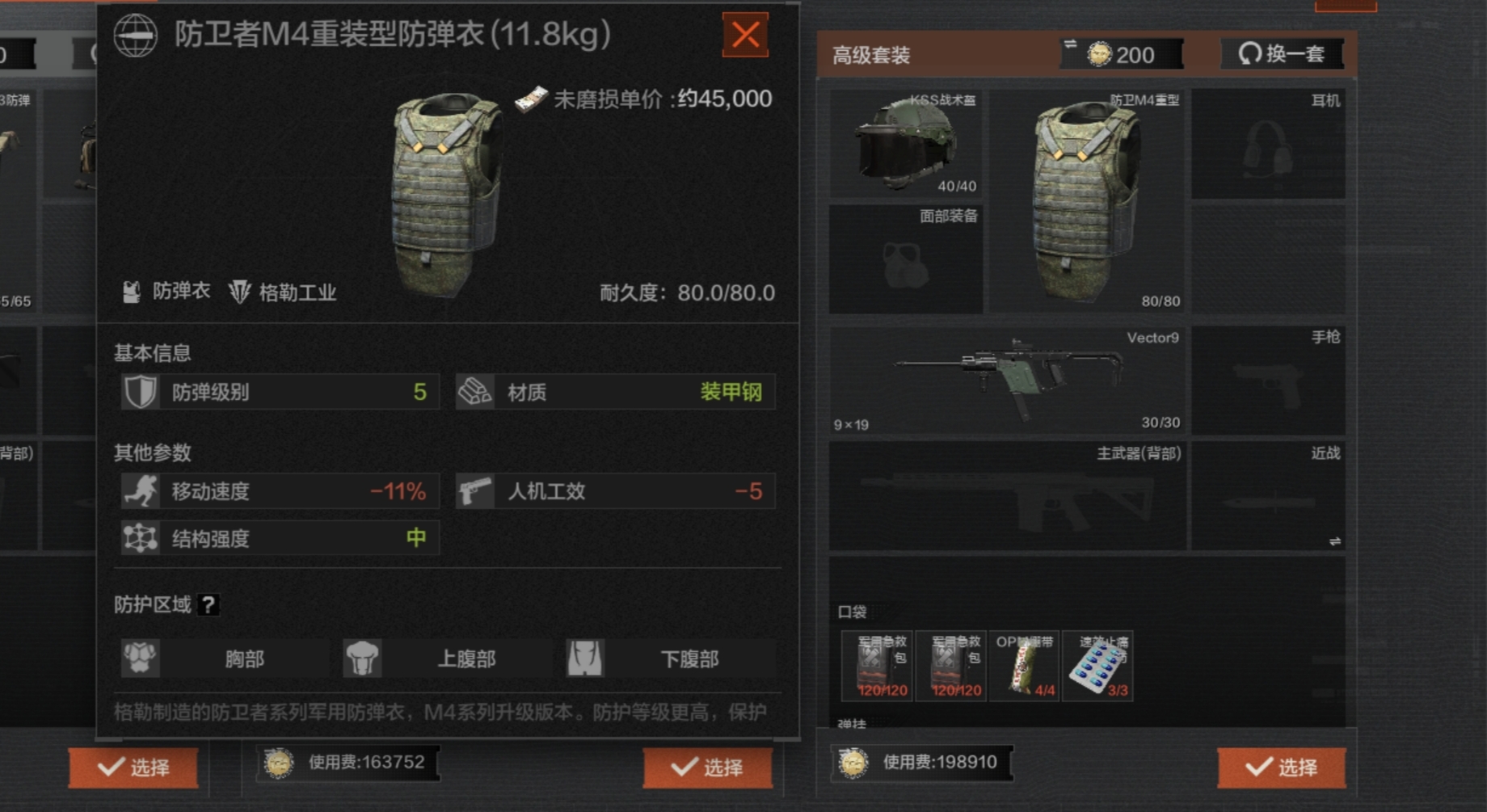 这里校尉个人建议大家选择高级套装里相对便宜的搭配,防具的品质较高;
