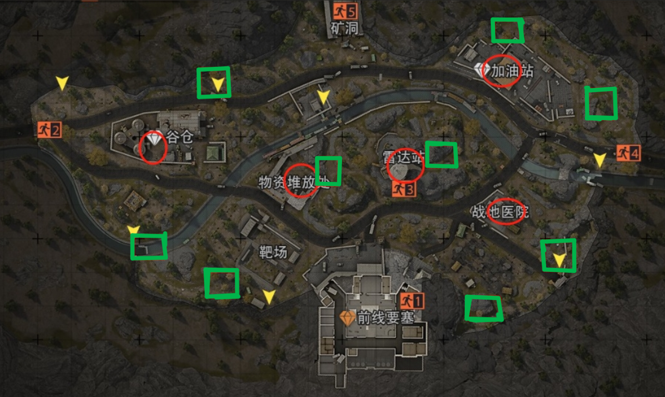 这边校尉也是给大家把地图上的免保(圆框)和出生点(方框)标注出来,方便各位先锋探索观摩~