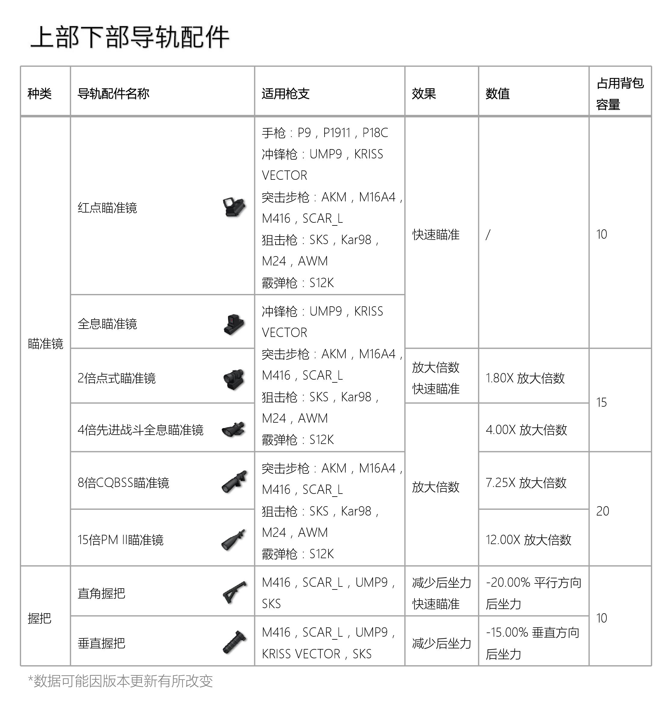 这篇主要介绍各类枪械所适配的配件,这样以后就不会看到地上琳琅满目的配件而犯晕了~