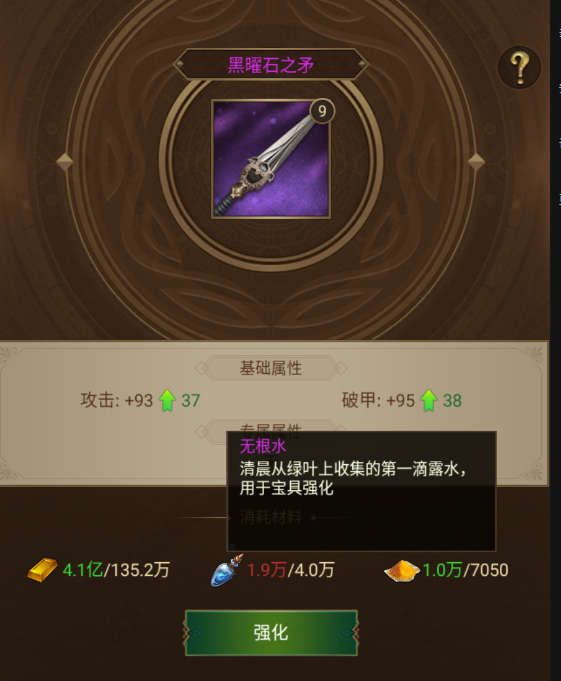 分解橙色和红色宝具:可获得一定数量的山铜和无根水