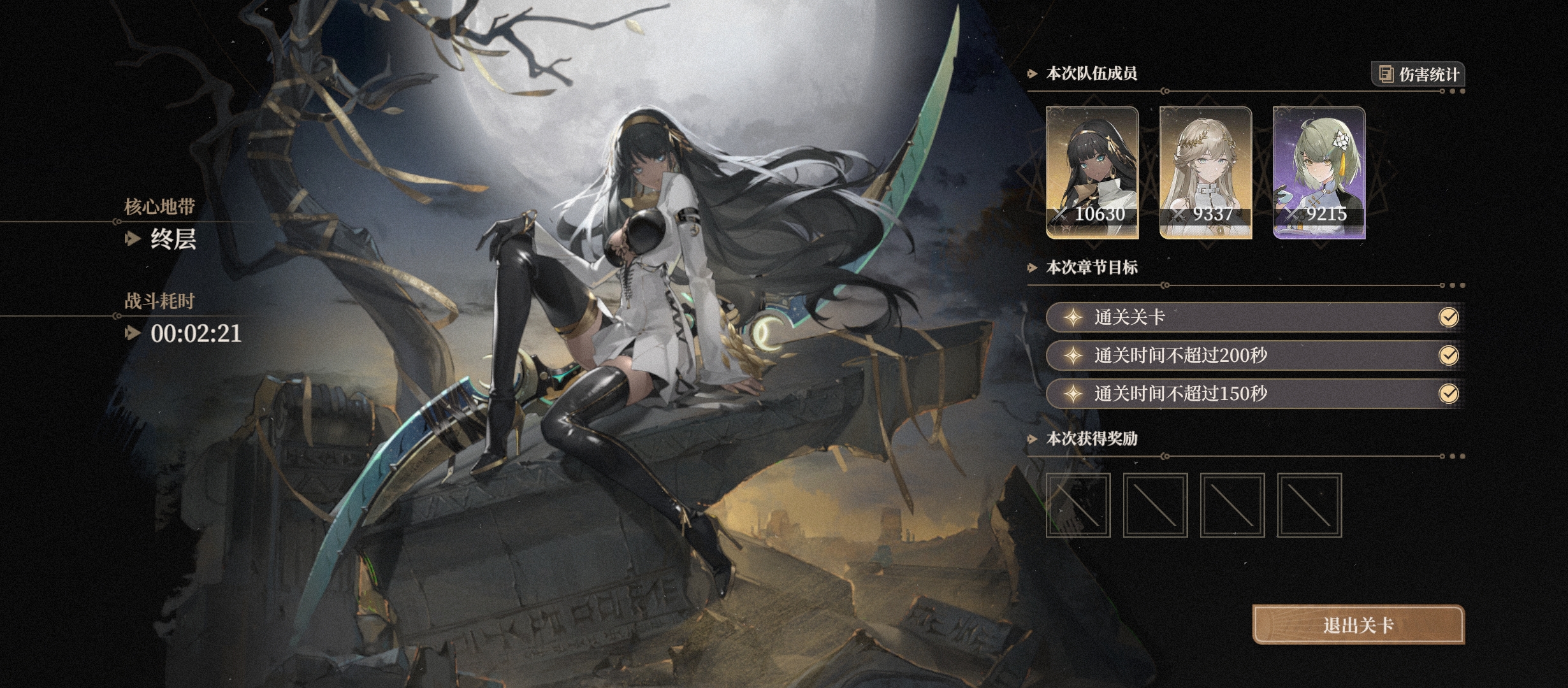简单介绍一下主播的阵容,上半使用的是0+1的铂鸢,3+2的赫菲,0+1的阿斯蒂。因为主播是屯屯鼠,潜能不高。下半使用的是1+1的南娜(因为凹下半的时候总是差几秒钟满星,所以一气之下自选换了南娜的1潜,换了1潜之后一把就满星通过了),0+1的萝歌丝,6+1的零。