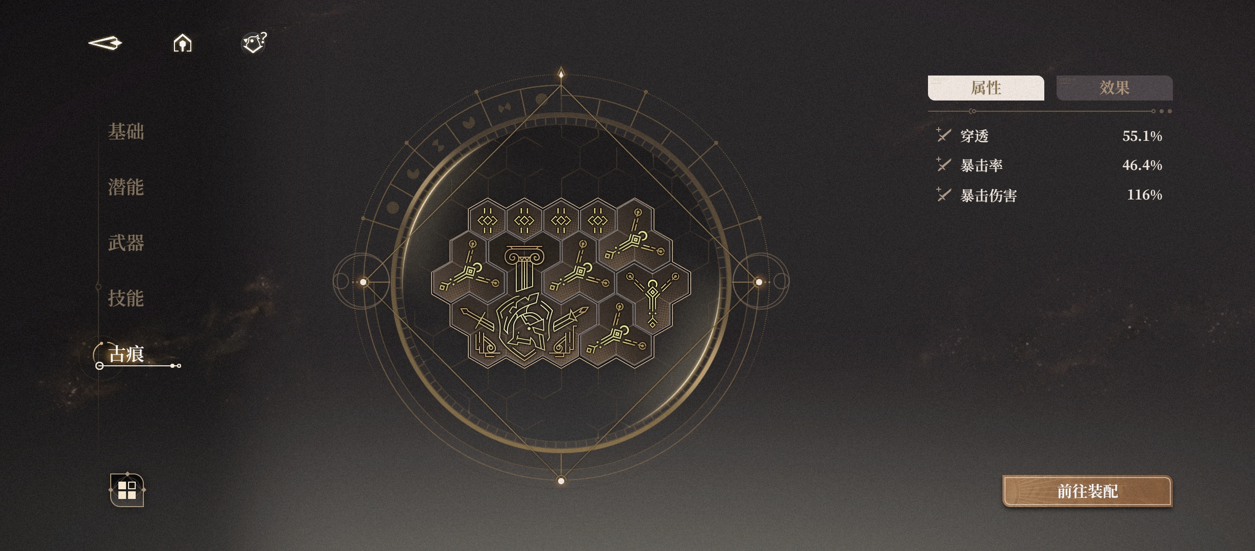 古痕方面,因为古痕是可以拆卸的,所以先凑齐3套通用的古痕(也就是不含火元素伤害加成之类的不通用词条),上半队伍打完换下半的队伍去穿,也就是6名角色用3套古痕,最大化利用资源。