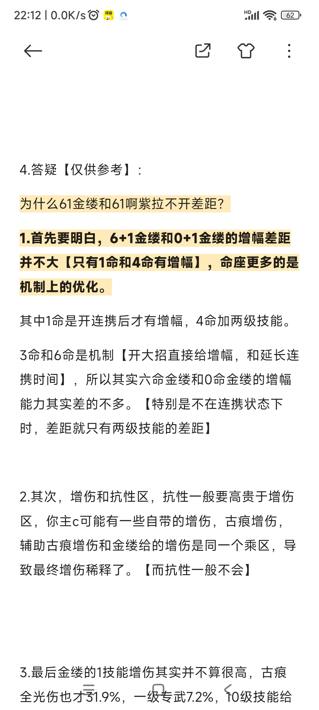 2.其次,增伤和抗性区,抗性一般要高贵于增伤区,你主c可能有一些自带的增伤,古痕增伤,辅助古痕增伤和金缕给的增伤是同一个乘区,导致最终增伤稀释了。【而抗性一般不会】