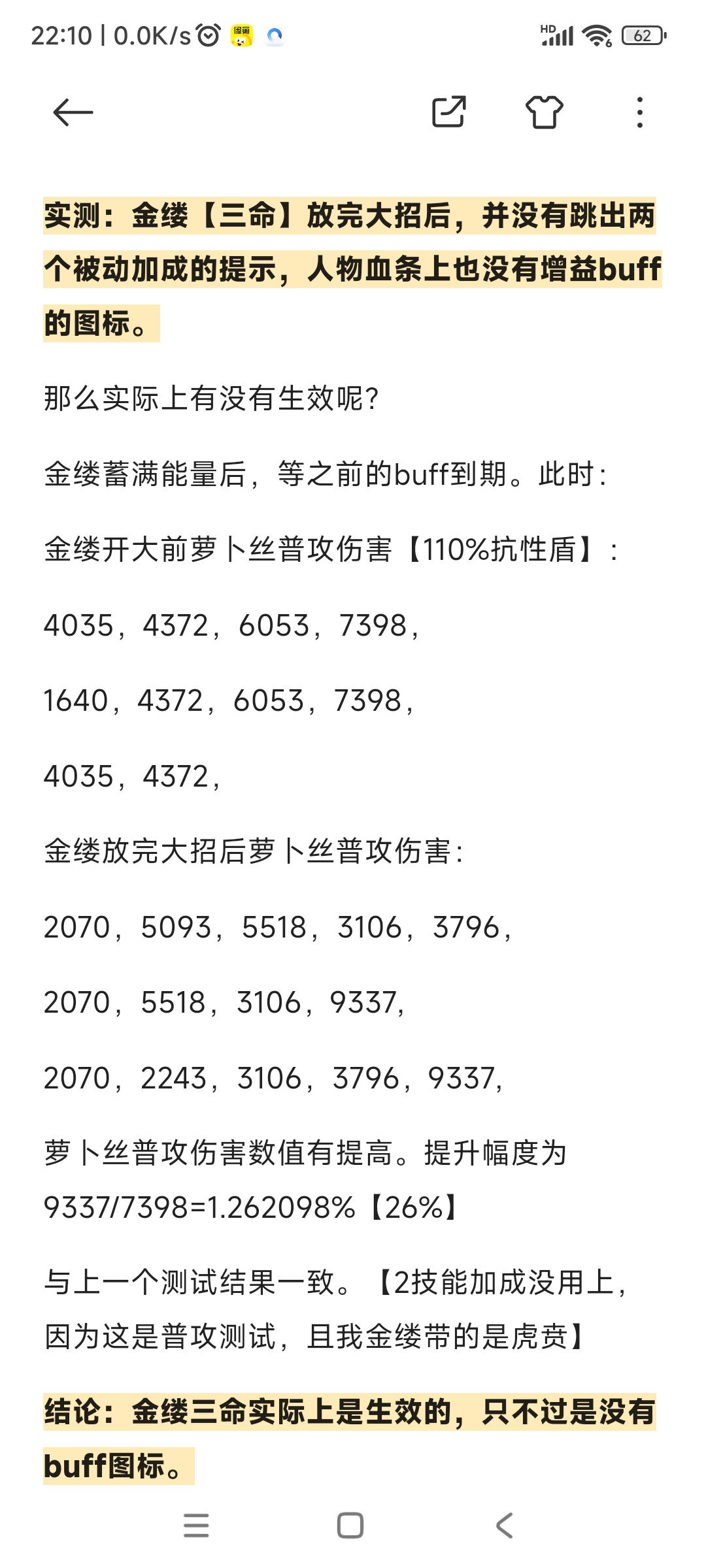 结论:金缕1技能加成正常生效,加成幅度【26%】与预期有出入,不知道是否正常。