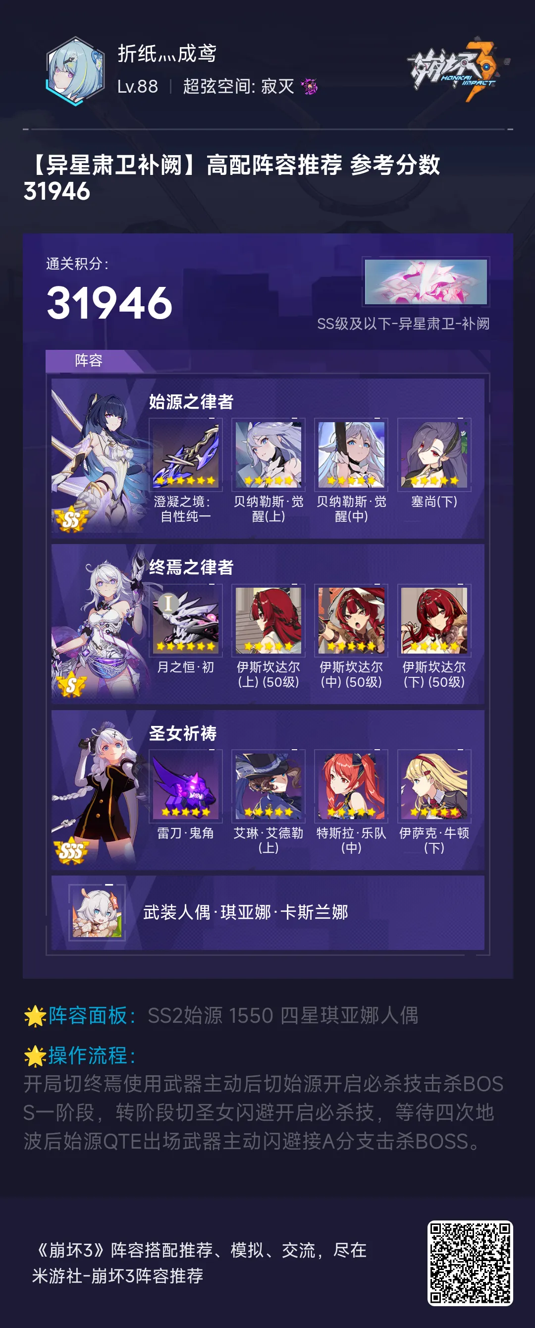 崩坏3战场一图流丨2025/5/18期终极区高配战场作业如下: