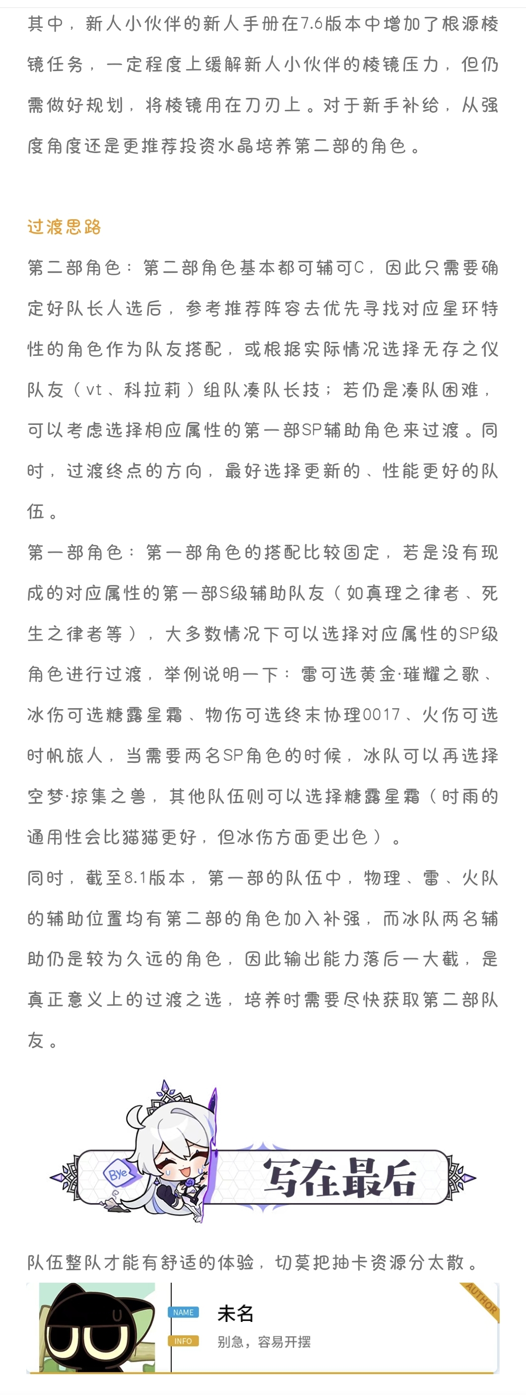 崩坏3新人指南丨8.1版本 培养思路、队伍搭配如下: