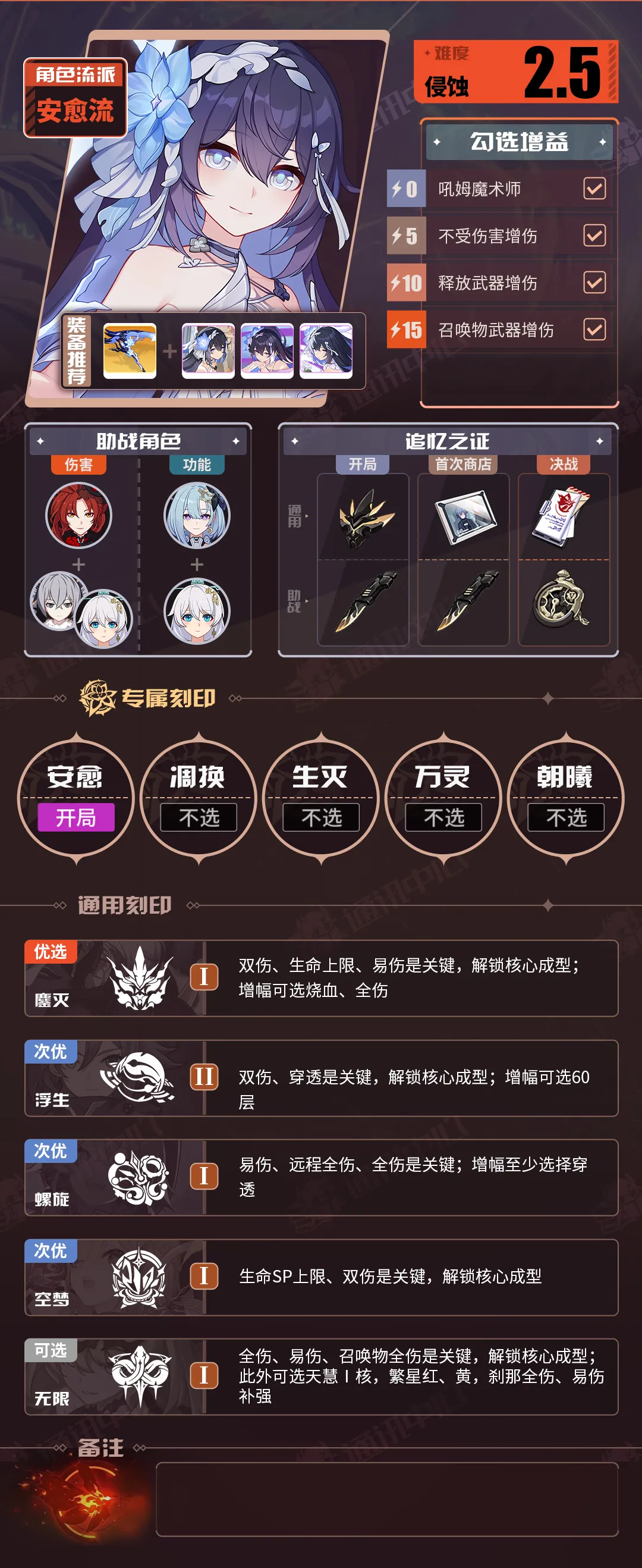 崩坏3往世乐土丨V8.1一期推荐角色BUFF表如下: