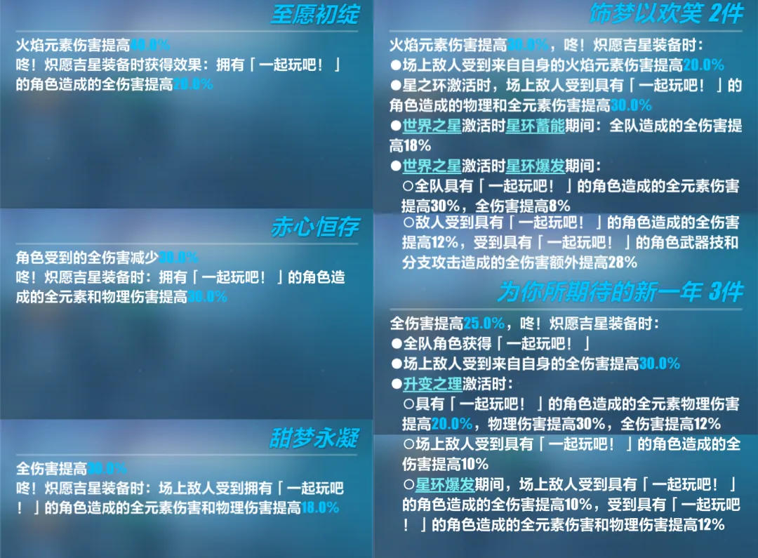 以及对全队的加成,新春琪装备即可给全队附加【一起玩吧】,提升我方造成的伤害,和赋予敌人易伤。