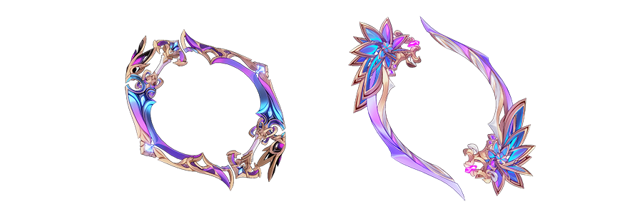 「娑影琉光」&「娑影琉光:熠之花」是6.5版本新登场的环刃武器及其超限形态,可无条件提高角色造成的全伤害,「女武神·热砂」使用时,判定成功时能够对敌人造成额外的流血伤害,并为自身附加【绮韵】状态,使全场敌人受到的流血伤害提高。