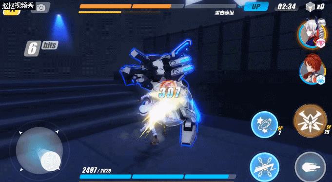 在上面的Gif中可以看到,深红在每次攻击后身上会显示一个蓝色的圈,只要在圈没有闪烁的时候点击攻击键就可以出发完美连击的效果了~