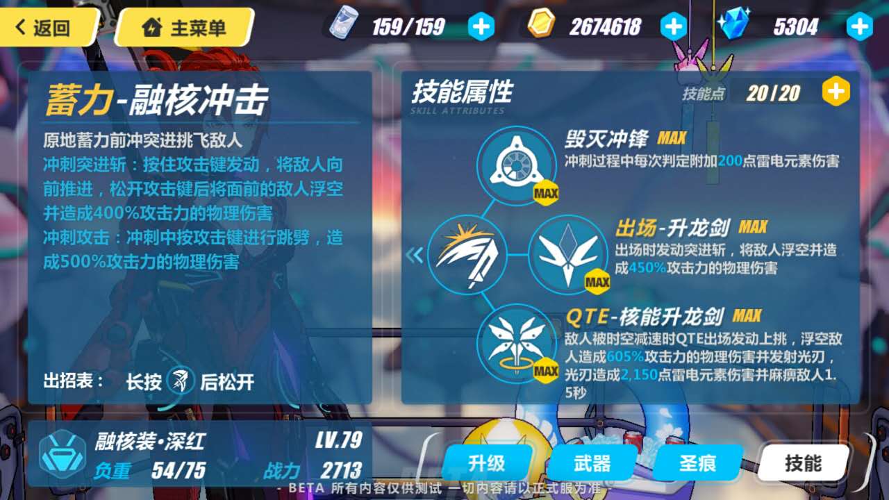 深红的QTE出场条件是敌人被时空减速,这个条件非常容易达成。而核能升龙剑满级605%的攻击力以及2150的雷电伤害,可以在QTE出场的一瞬间就会对护盾造成高额的伤害,并将敌人击飞。蓄力攻击,也就是蓄力上挑,深红可以在短暂的蓄力后,将敌人挑飞,配合1.6版本【完美连击】可以造成高额的伤害。