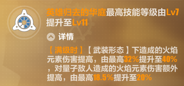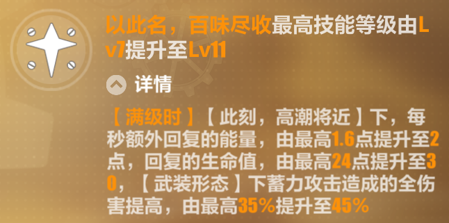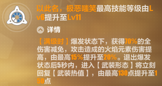 [武装热值]满额时进入[此刻,高潮将近]状态,提高两种武器攻击的伤害倍率。