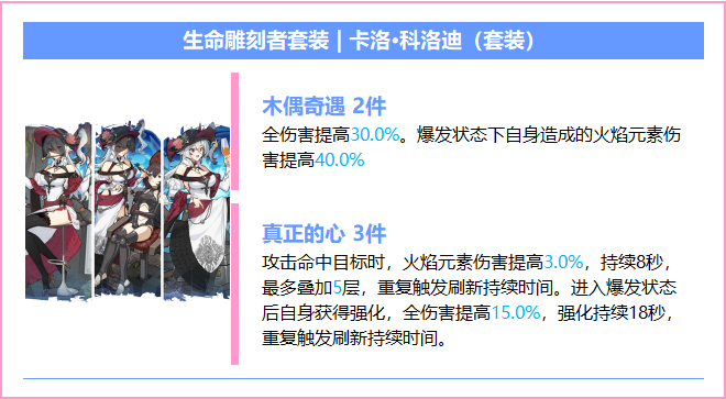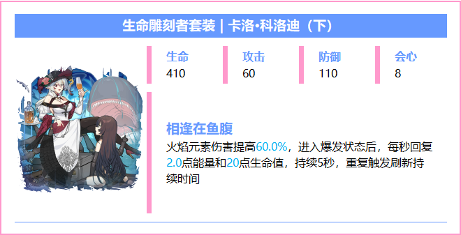提供高额的无条件火焰元素伤害,进入爆发状态后提供每秒回复能量和生命。