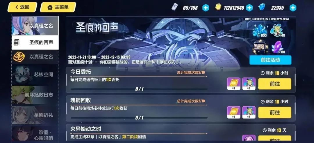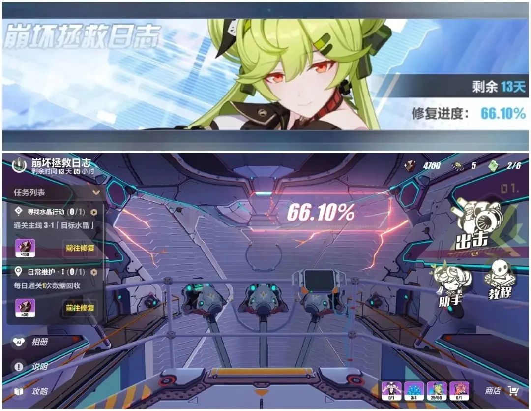 一般,我们将每个版本更新后开启的大型活动称为版本活动,它们往往有着大量的剧情以及独特的玩法,奖励也非常丰富。比如版本活动“崩坏拯救日志”。