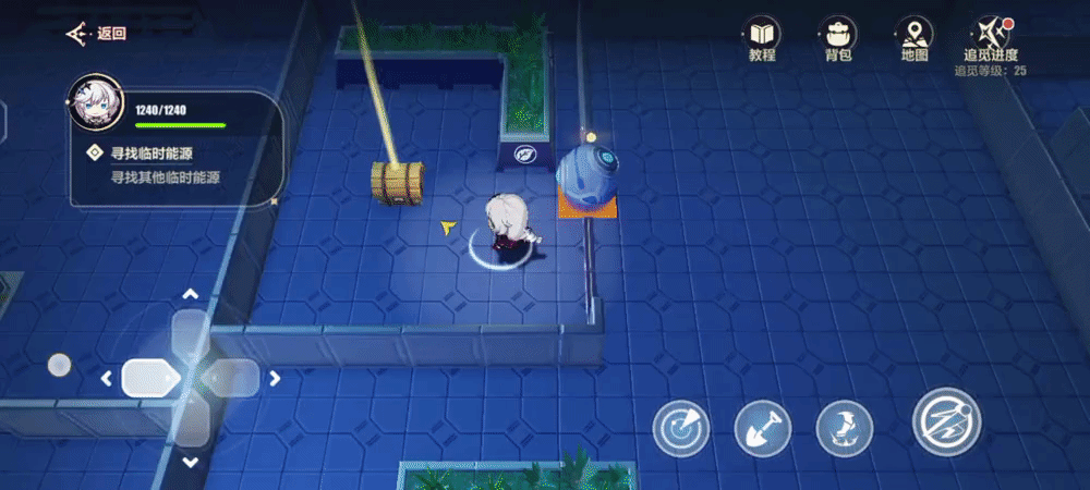 开局玩家朝着前方移动,普攻+闪避打伤害积攒蓄能值,蓄能满了后长按普攻发动分支技能,打出浮空效果,随后不断普攻击杀敌人,然后快速来到右侧继续普攻,等能量满了发动必杀技造成高额输出,基本上五击就能解决敌人,最后来到后方位置普攻+闪避不断连招即可顺利通关。