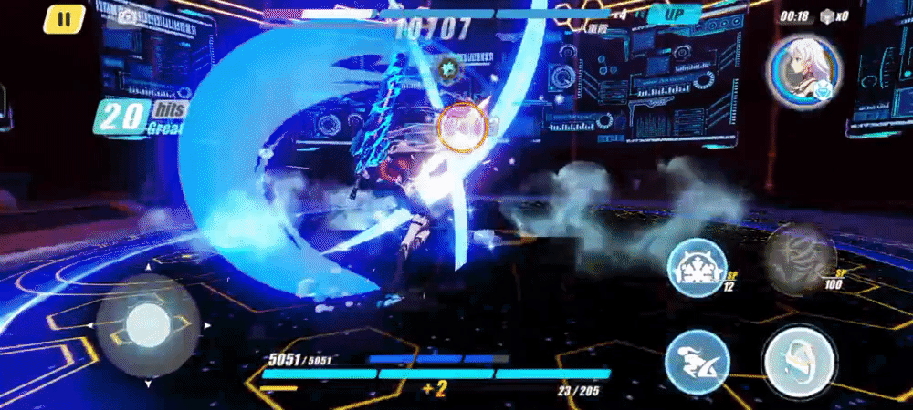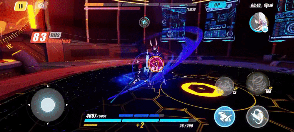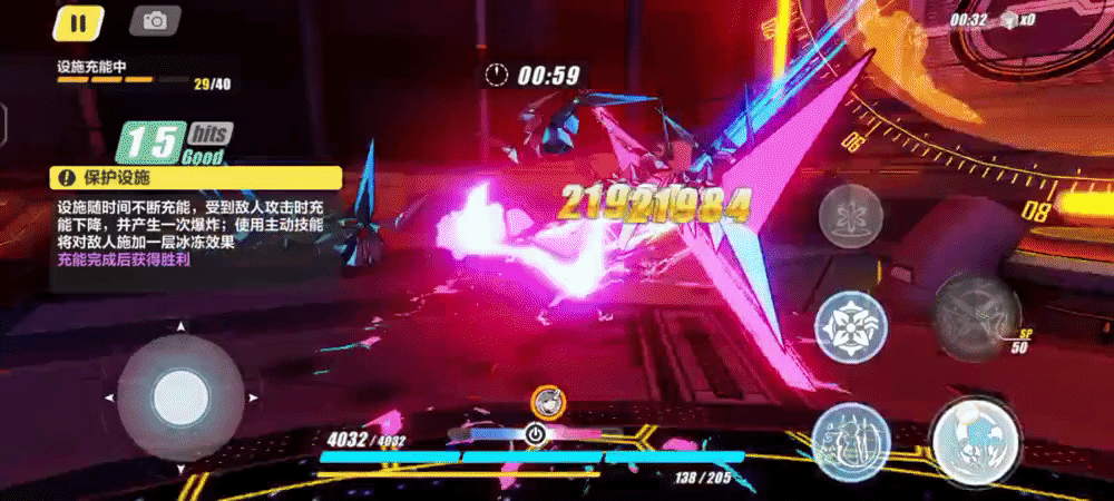 敌人输出比较高,最好让其一直浮空。开始先用极地战刃贴身普攻,敌人发动技能时闪避躲开,之后继续普攻,蓄能满了长按普攻进入临界状态打掉敌方护盾,随后切换原罪猎人普攻+分支不断施加脆弱状态,然后发动必杀技召唤机甲不断输出,基本上无伤击杀八重霞。