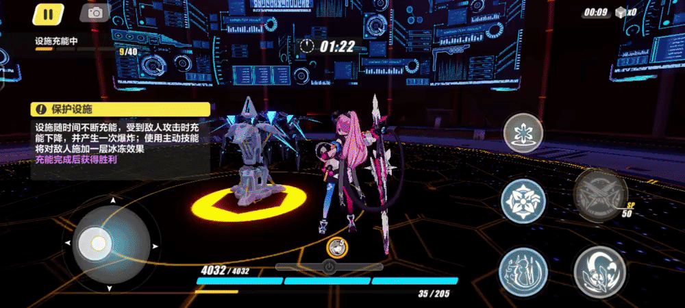 敌人主要为噩梦模块-机械,一共有十二个,分别从前方、右侧和后方出现。噩梦模块技能只有两个技能。一技能挥动手臂武器造成近身伤害,距离近,伤害低;二技能用双手对前方玩家造成范围伤害,速度慢,伤害高。敌人攻击虽慢,但数量多,很容易被敌方群殴,因此需要快速击杀。
