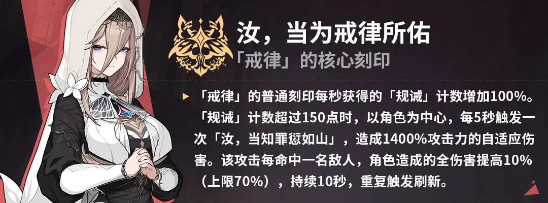 戒律Ⅱ继续兜底补强,主要还是触发比较稳定,加上可选的刻印也不是很多。