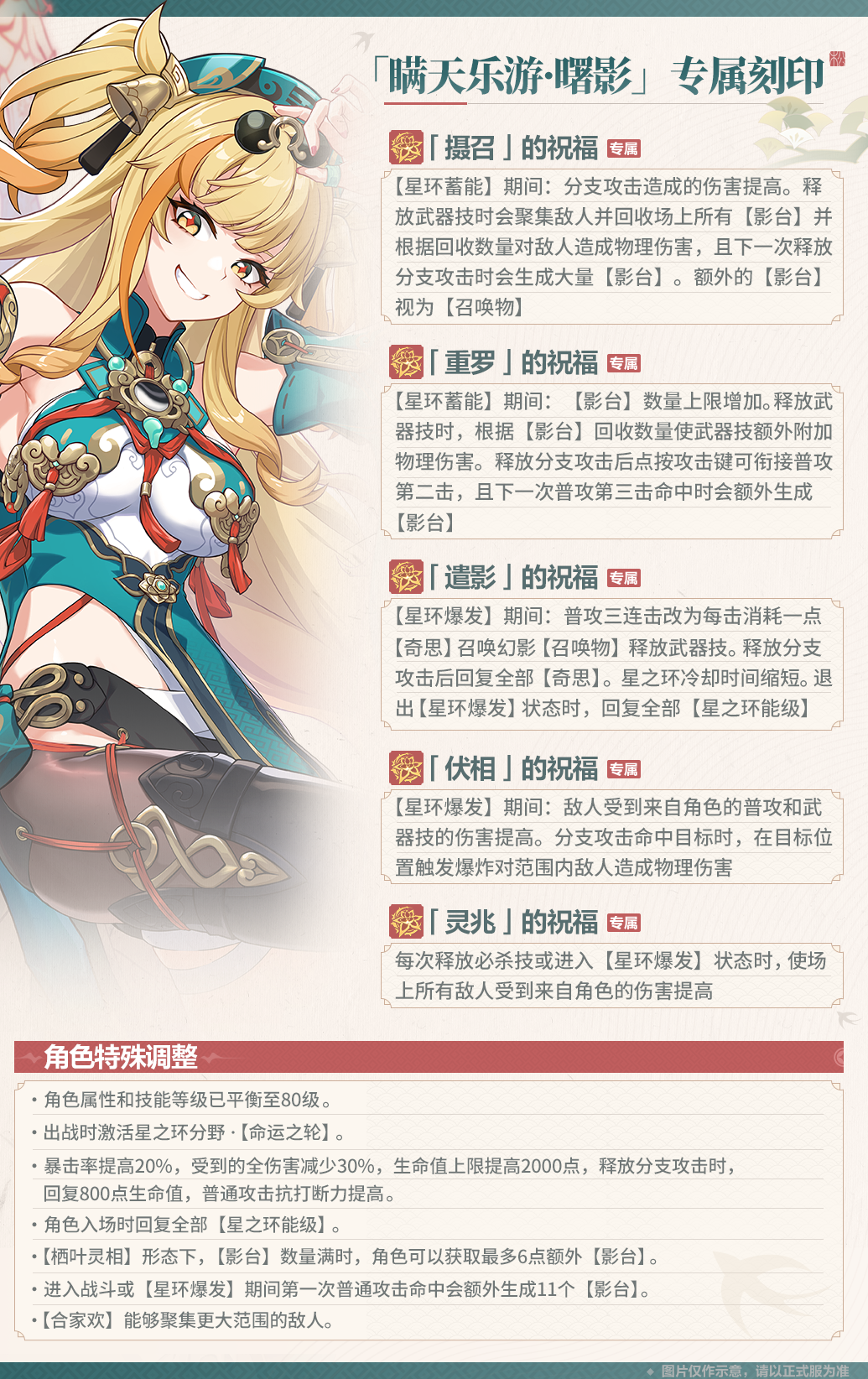 7.6版本更新后,「瞒天乐游·曙影」将作为可选角色加入到「往世乐土」的战斗中,请舰长通过下方长图,一起查看详细信息吧~