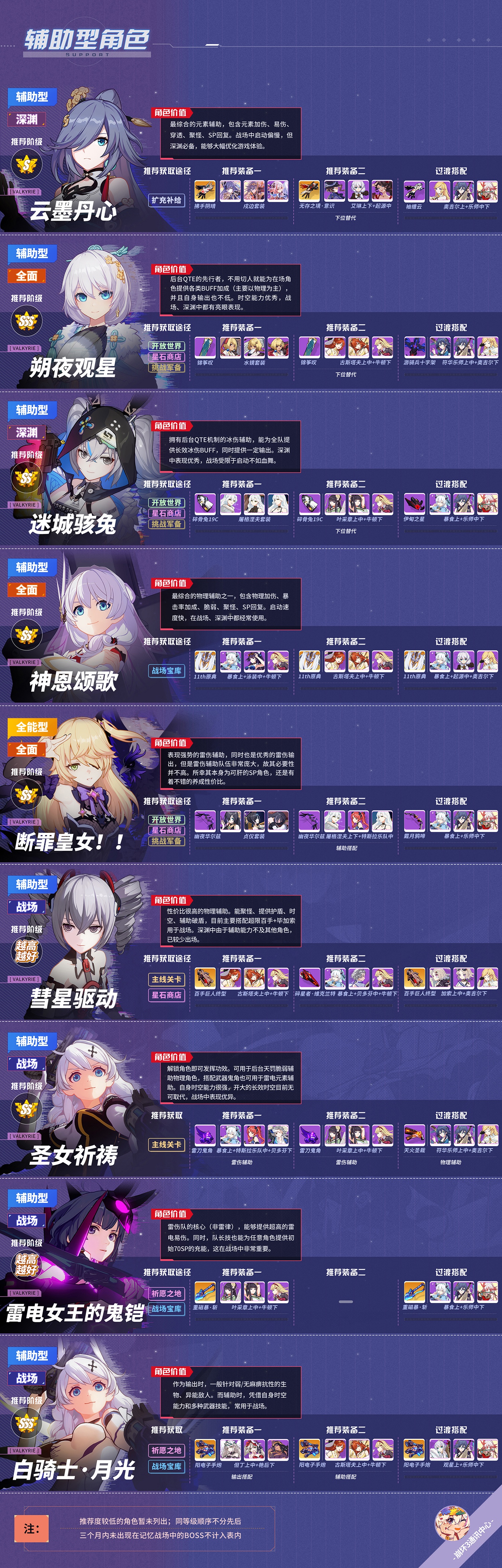 崩坏3【崩坏3通讯中心】5.0版本角色推荐表丨我该说神舟平板永远的神吗~如下:
