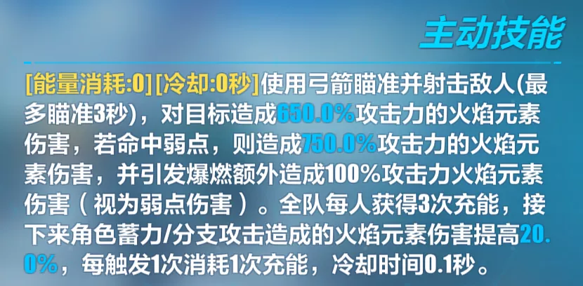 简评:武器主动可以造成火焰伤害,并使全队角色各获得三次火焰加伤充能,在瞄准弱点时提高主动倍率并附带爆炸伤害。表面来看,影夜栖羽就是一把朴实无华的五星弓箭,甚至主动倍率也没有比肝物戴月鸦啼高很多(命中弱点600%攻击力自适应伤害)