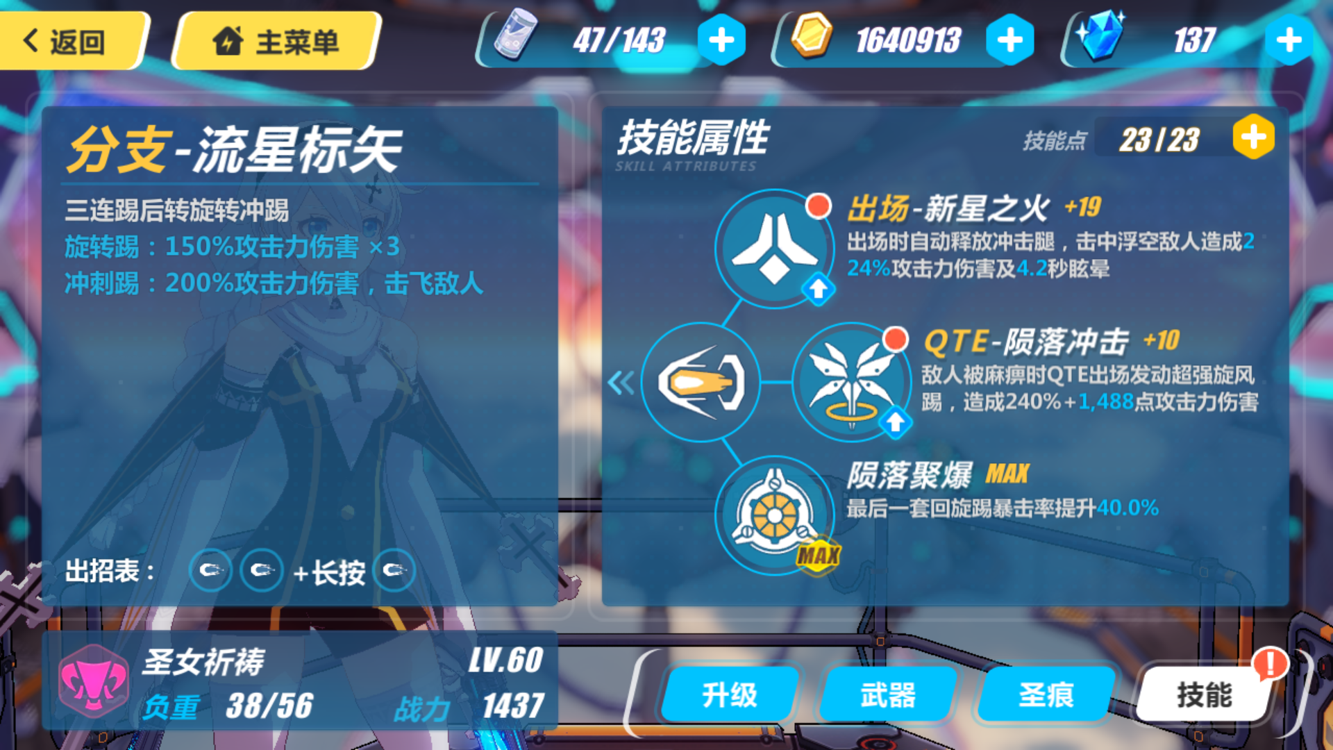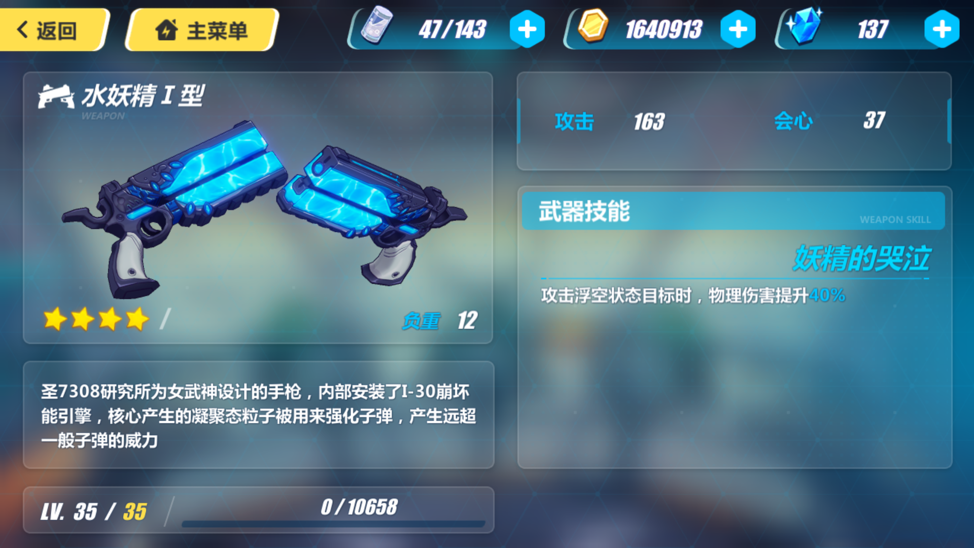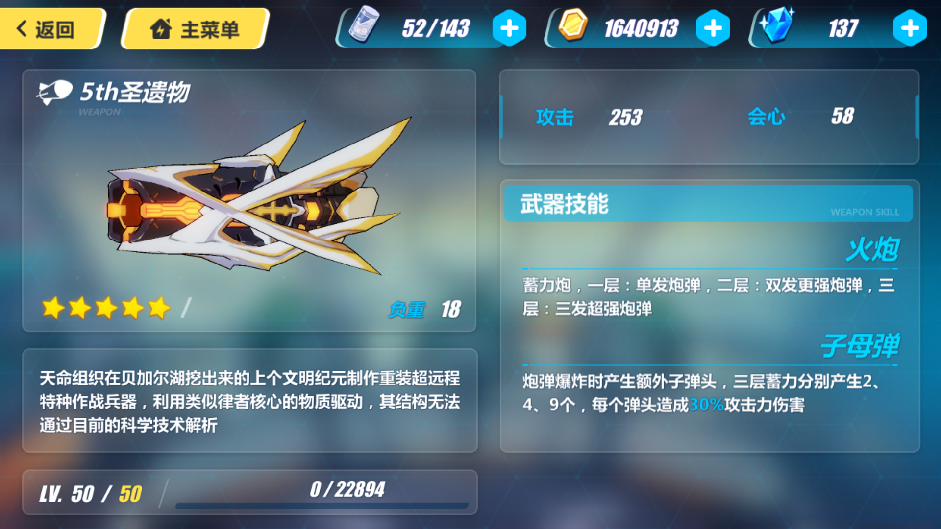 圣女专用的四星神器。37的会心就算放在五星武器里也可圈可点,而且它的被动武器技能:攻击浮空状态的目标时,物理伤害提升40%。而圣女的闪避提供了稳定浮空,圣女的分支攻击则可以使敌人长时间浮空,配合被动陨落菊爆(没毛病)最后一套暴击率提升40% 可以说脚脚暴击。伤害爆炸。外观的话升满四星枪身蓝色的部分会发亮,暗的地图很好看。我最喜欢的四星武器!