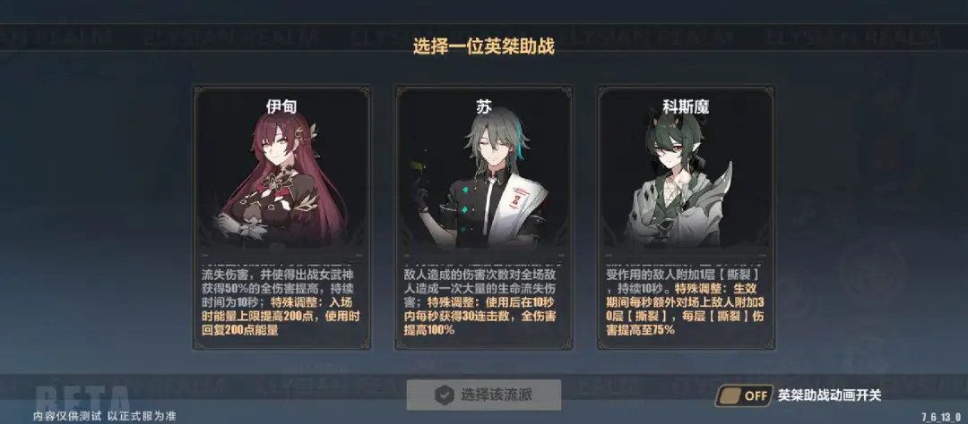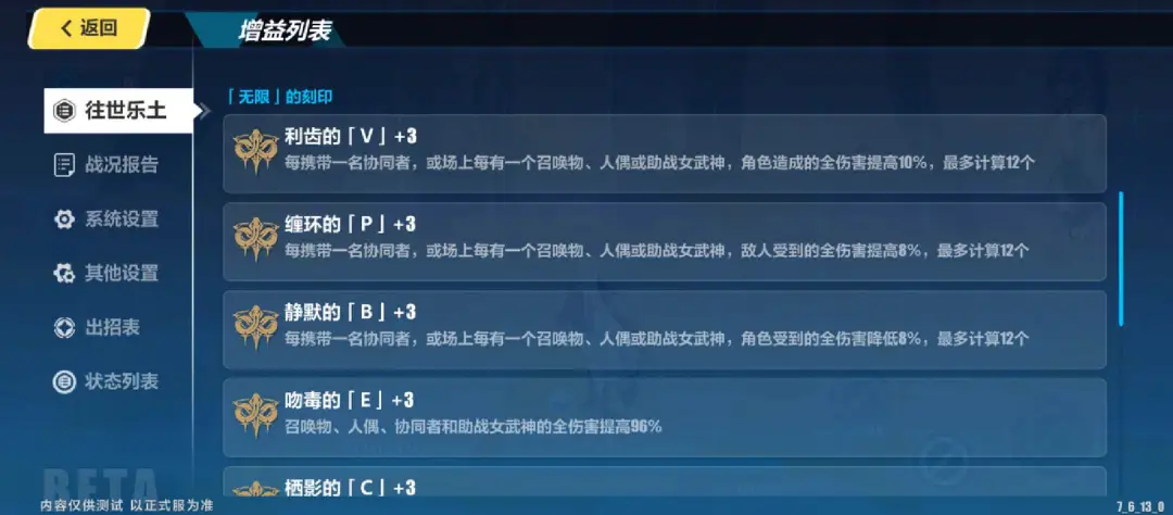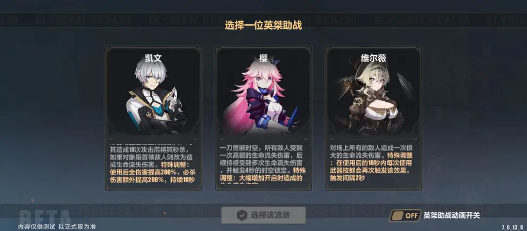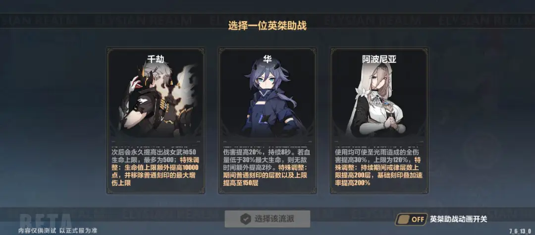 解锁英桀助战的层数为第5层结束后,选取范围对应前三层所选取的英桀刻印(即前三层选了哪些英桀刻印的核心,就能选哪个英桀的助战),充能条件除了原先的条件不变以外,每秒会提供30点的额外充能,每层战斗开始时为满充能状态,同时效果均略微有些调整。