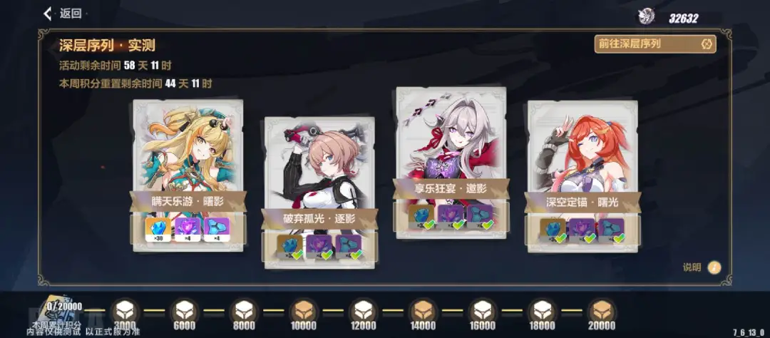 目前来说仅开放了4位2.0的S级角色可供减负,其他角色还是需要点击右上角的前往深层序列去打以往的周常。