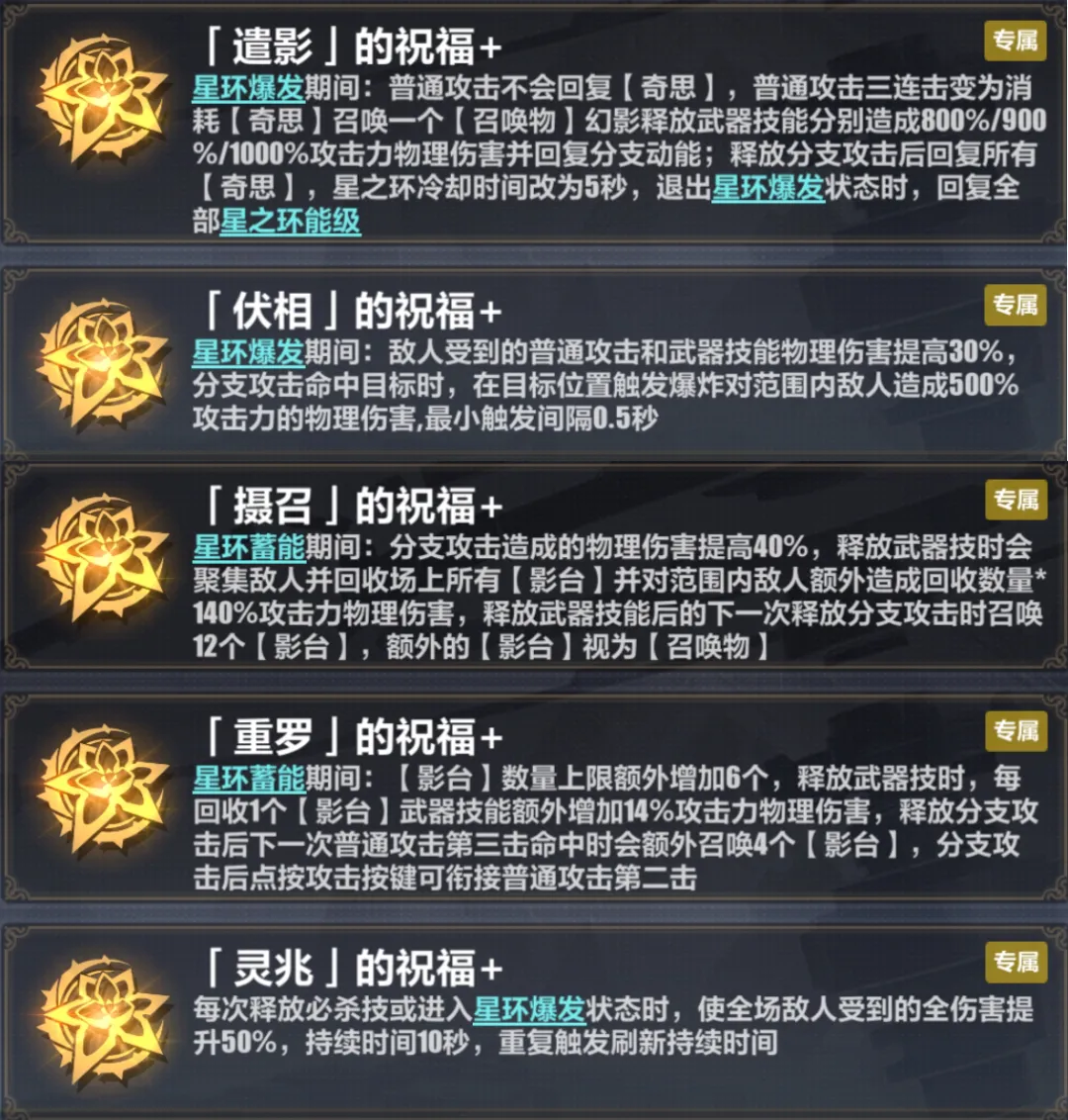 【遣影】+【伏相】纯看专属来说,单【遣盈】的机制就已经完善,【伏相】可作为野生专属补强。