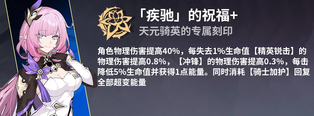 而疾驰专属在天元冲锋一轮后会消耗它以回满动能,供天元再冲一轮。