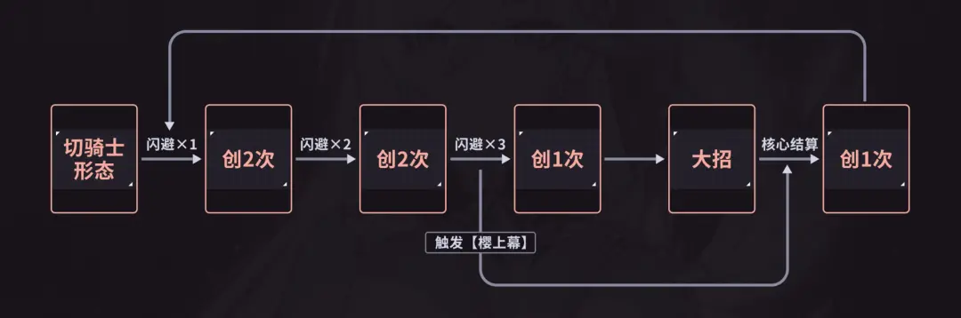 以上为循环成型时的手法。若未成型,开局可以先盾反打一套霸斩,随后上马触发【格尼乌斯】(重置极限闪避CD)接上述流程,不会掉闪避次数且能补充输出。