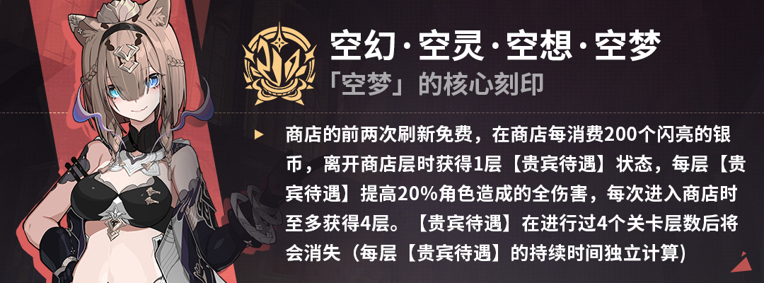 空梦Ⅱ是相当少见的刻印,主要是因为绝大部分角色不缺全伤加成,而这个核心效果则偏偏给了大量的全伤,稀释严重;另外增幅的易伤衰减速度过快,很难充分利用,所以登场率不高。