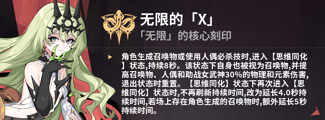白银之月为召唤物,而所有施加冰蚀的手段都会召唤白银之月,所以月魂非常适合无限Ⅰ,且无限Ⅰ的增幅有了穿透,完全可以无限Ⅰ全家桶。拿到两个减助战冷却后几乎可以常驻云墨和帕朵的助战效果。