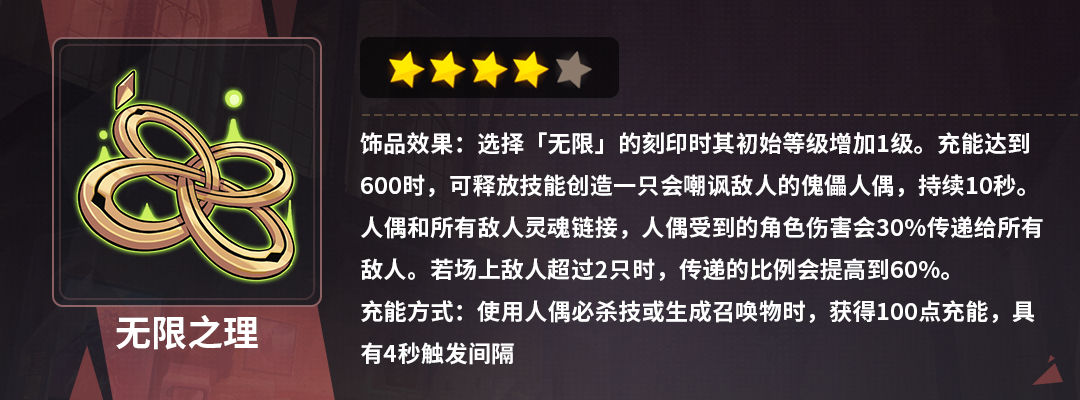 可以给月魂带来源源不断的能量来保持爆发状态,也有常驻加成,而无限有非常非常多全伤了,所以这个全伤提升比较小,可拿可不拿;三个增幅里只有数值增加比较有用,进救世门去找的话,歪的风险不小。