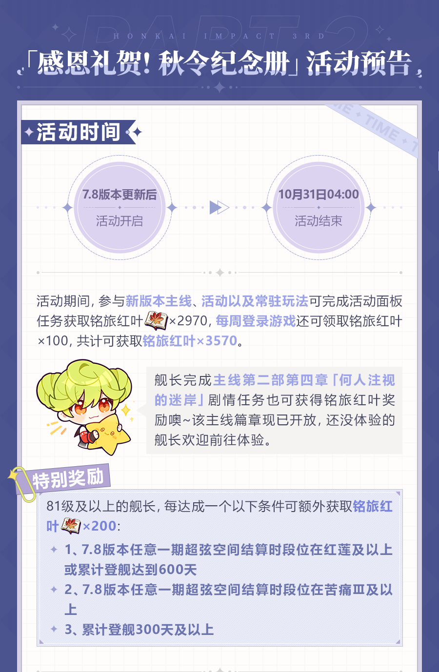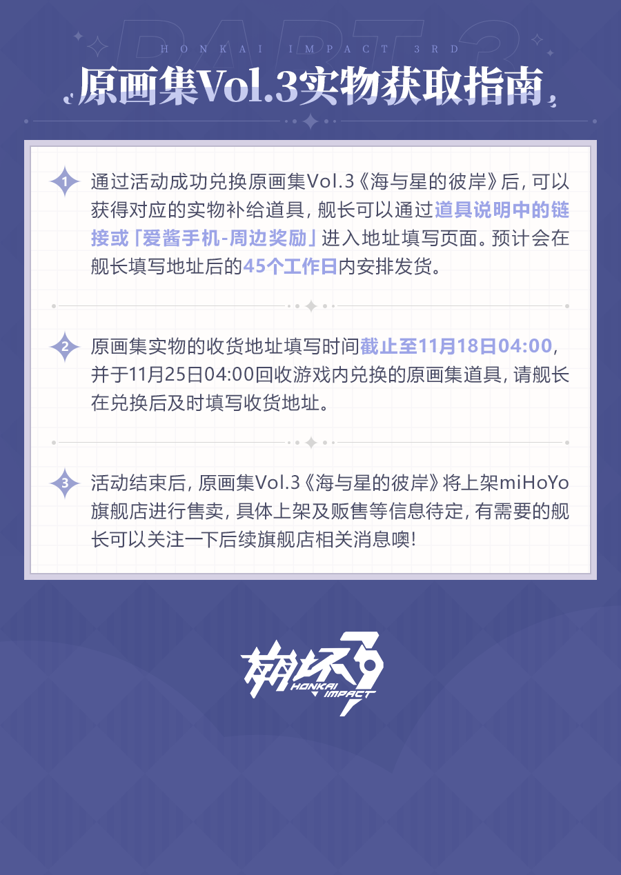 崩坏3Vol.3海与星的彼岸如下: