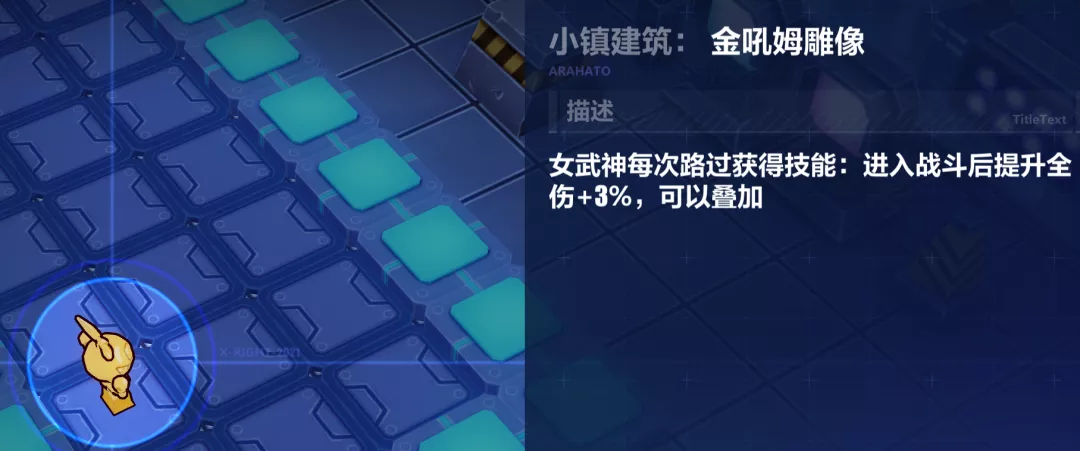 本关的核心建筑是吼姆雕像、舞台、游戏厅和中式庭院,舞台提供的敏捷可以提高生物女武神的移动速度,以吃到吼姆雕像的加成,而游戏厅能迅速提高全体女武神的力量(机械女武神和识宝提升更多),是启动箭头的关键(启动后才能路过吼姆雕像)。